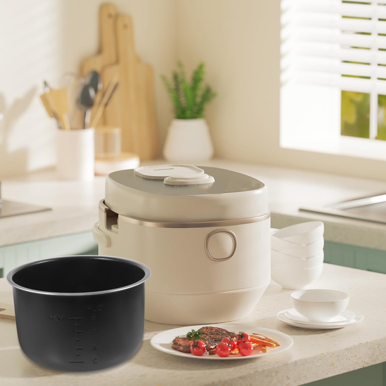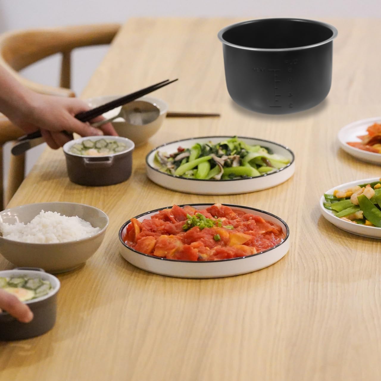 Features-Color:Black.-Material:Aluminium alloy..-Size:21.90X21.90X12.80cm/8.61X8.61X5.03in(liner).-Size:19.00X7.50X3.00cm./7.47X2.95X1.18in(soup ladle).-Size:18.50X7.00X7.00cm./7.27X2.75X2.75in(rice ladle).-Capacity: 4LPackage Including1 x liner.1 x soup ladle.1 x rice ladle.