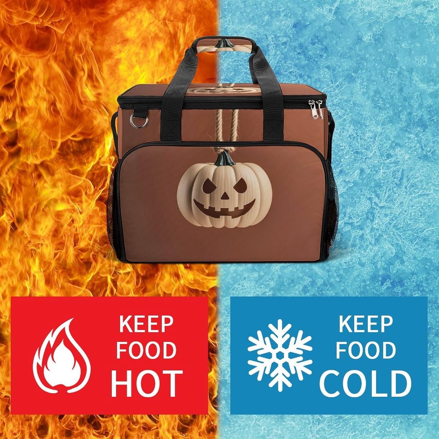 Take Your Meals Anywhere with Wooden Pumpkins Grocery BagsFood Container Carrier Oxford Fabric Picnic Bag Heat Retaining Food Bag Camping Cooler BBQ Accessories Cute Picnic Bag with Pockets Insulated Food Bag for Work Insulated Lunch Tote Bag Camping BagTemperature Control That WorksThe upgraded aluminum foil lining creates an effective thermal barrier. Your drinks stay refreshingly cold, and your hot dishes maintain their warmth for hours. No more lukewarm meals during outdoor outings.Thoughtful Storage DesignTwo side mesh pockets - Perfect for water bottles or umbrellasFront zippered pocket - Keeps keys, phone, or condiments organizedInternal mesh pocket - Stores utensils, napkins, and small essentialsMain compartment - Spacious enough for food containers and snacksBuilt for Daily AdventuresConstructed from high-density oxford fabric with reinforced stitching at stress points. The double zippers are sturdy and smooth-operating. Reinforced handles let you carry heavy loads with confidence.Carry Your WayHandles for quick grabbingStands upright for easy packing and accessPerfect For:Picnics in the parkBeach days and pool partiesCamping and hiking tripsOutdoor concerts and festivalsDaily work lunchesGym and fitness classesRoad trips and travelGrocery shoppingSpecifications:Dimensions: 15.4 x 11.8 x 11.8 inchesMaterial: High-density Oxford fabricLining: Aluminum foil (insulated)Closure: Sturdy double zippersPockets: 2 side mesh, 1 front zipper, 1 internal meshCare: Hand wash or machine wash, do not bleachNote: Food containers and utensils shown in images are not included.