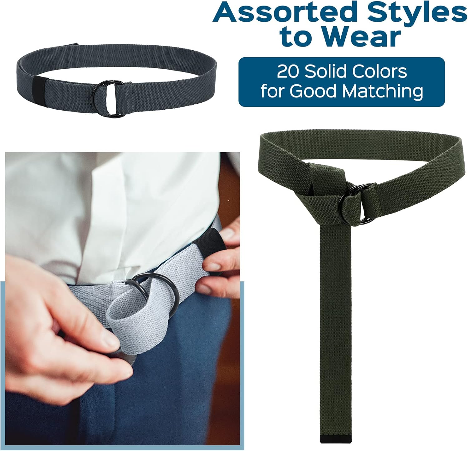 Features: Good match: The package comes with 20 pieces D ring belt in 20 different styles, enough quantity and rich colors to meet your daily replacement needs. You can match various colors of clothes according to your looks or share them with friends. Exquisite to use: These canvas cloth belts have a delicate design, beautiful appearance, with exquisite craftsmanship and a wide range of usages, charming and practical. Specifications: Main material: canvas, metal Color: as pictures shown Length size: approx. 120 cm/ 47 inch for waist size 34-39 inches Width size: approx. 1.5 inch Package include: 20 x Canvas belts Recommend you choose the belt which is 8-10 inches longer than your waistline. Please allow slight size error due to manual measurement. The colors may exist slight difference due to different screen. Winding risk may exist, kids should use them under adults' supervision.