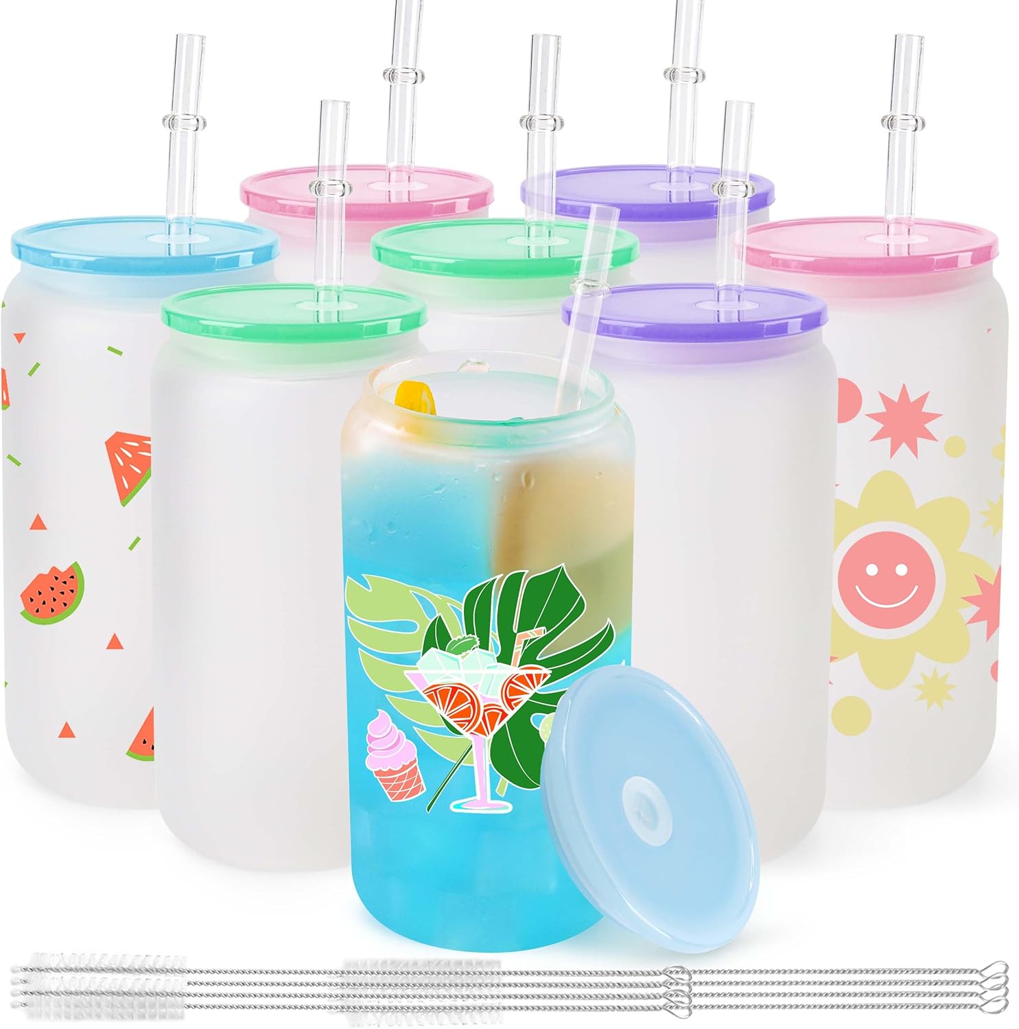 | Included Components | 12 Colored Acrylic Lids, 12 Frosted Sublimation Glass Cups, 12 Straw Brushes, 12 Straws |