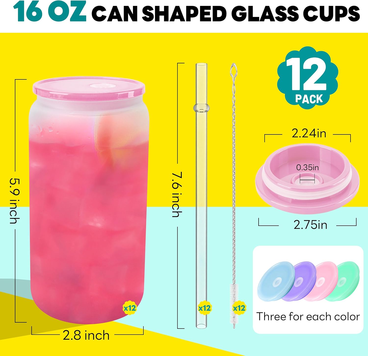 | Color | 12 Pack Frosted Glass and Muticolor Lids |