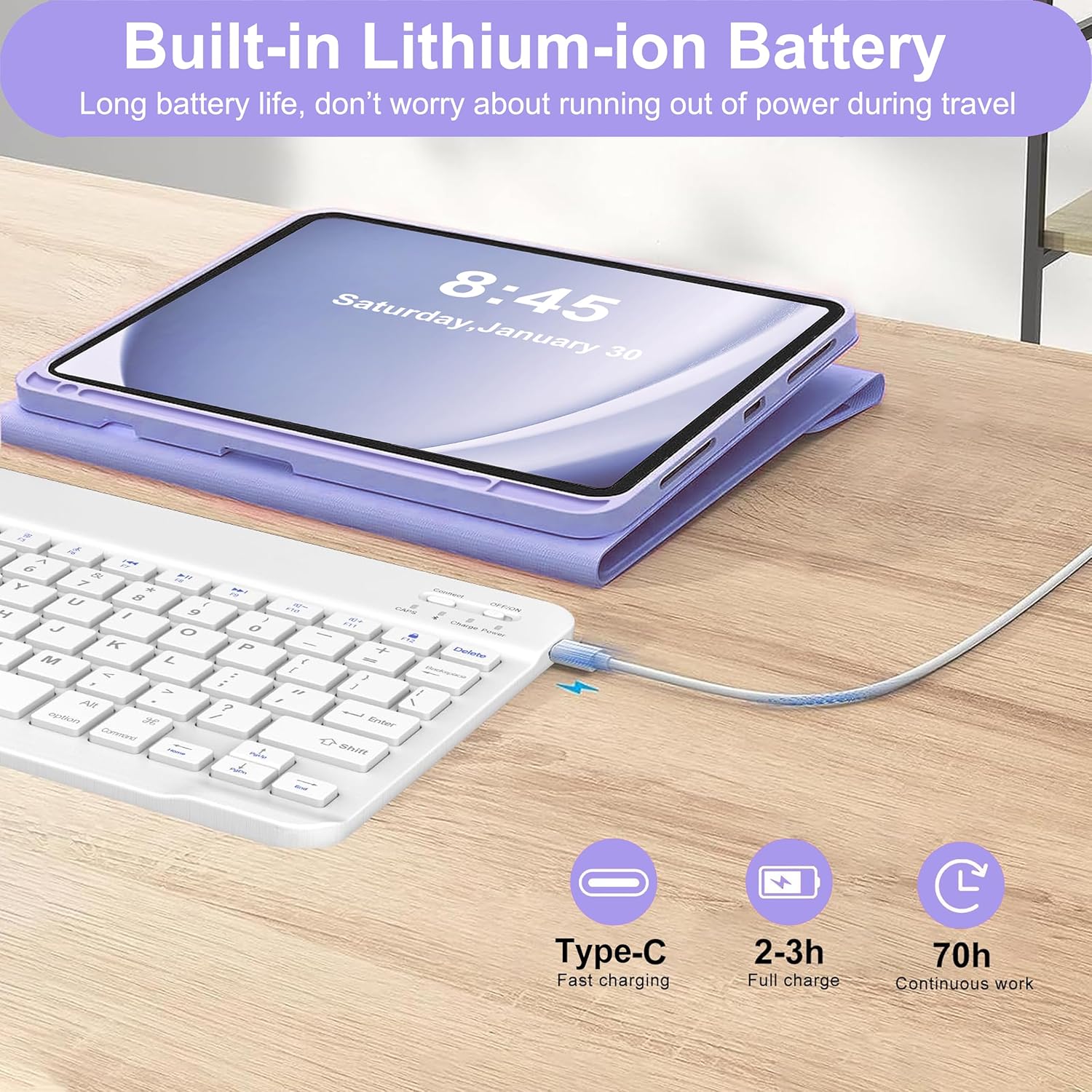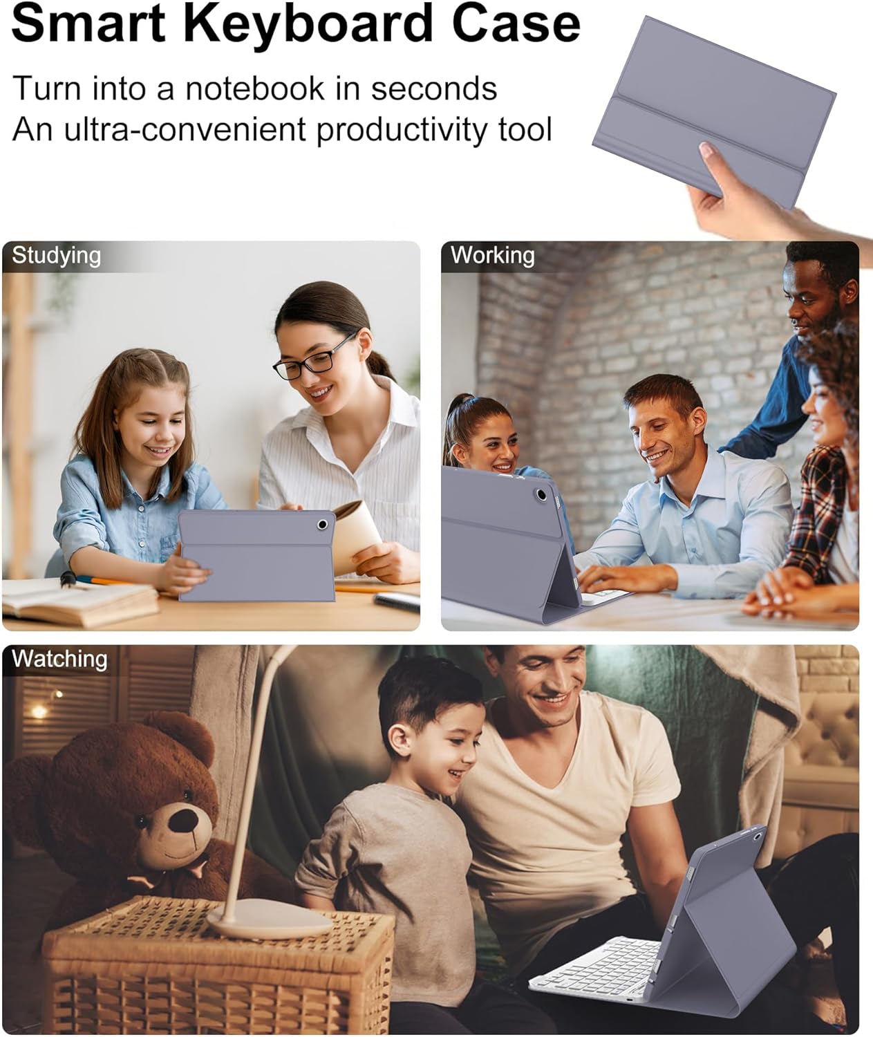 AMOUOGOEY Funda Galaxy Tab A9 Plus con Teclado de 11 Pulgadas, Teclado Bluetooth Inalámbrico Desmontable Magnético, Funda Protectora Inteligente con Soporte para S Pen para Tablet A9+ 5G (SM-X210/X216/X218) - LavandaDescripción:Diseño delgado, resistente y atractivo. Se adapta perfectamente a su funda Galaxy Tab A9+ con el teclado, proporcionando una protección adecuada para el uso diario.Funda para tableta Samsung A9+ con teclado y teclado realmente silencioso que admite 3 modos de uso: escritura, visualización y lectura, lo que le brinda una versatilidad increíble.Todo lo que necesitas para tu tablet en una sola herramienta. Los estuches tipo folio llevan la informática móvil al siguiente nivel. Ahora puedes disfrutar de una experiencia de escritura similar a la de una computadora portátil en cualquier momento y en cualquier lugar, siempre que tengas tu tableta contigo. Su diseño delgado permite usarlo en cualquier lugar y en cualquier momento.El teclado Bluetooth responde muy bien y permanece en la caja con imanes.Uso perfecto de todos los puertos/botones y cámaras.El teclado grande y bien espaciado que contiene una fila completa de teclas de método abreviado le permite escribir cómodamente con velocidad y precisión.La funda para Galaxy tab A9 plus 5g con teclado adopta la interfaz tipo C más general, se carga durante 2 a 3 horas y puede funcionar de forma continua durante hasta 70 horas en uso normal.Le proporcionaremos una garantía de 12 meses y una garantía de devolución de dinero de 30 días desde la compra de nuestra funda Samsung Galaxy Tab A9 plus con teclado de 11 pulgadas.Si tiene alguna pregunta o necesidad, no dude en contactarnos, resolveremos su problema dentro de las 24 horas.¿Cómo conectarse a Bluetooth?· Cargue completamente el teclado y enciéndalo (normalmente entre 4 y 5 horas).· Presione el botón "Conectar" para encender el Bluetooth del teclado.· Encienda el Bluetooth de la tableta.· Busque y seleccione "Teclado Bluetooth 3.0", se conectará automáticamente.* Lista de embalaje:1 teclado para Samsung Galaxy Tab A9+ funda con teclado de 11 pulgadas 2023.1 cable de carga tipo C1 manual de usuario.