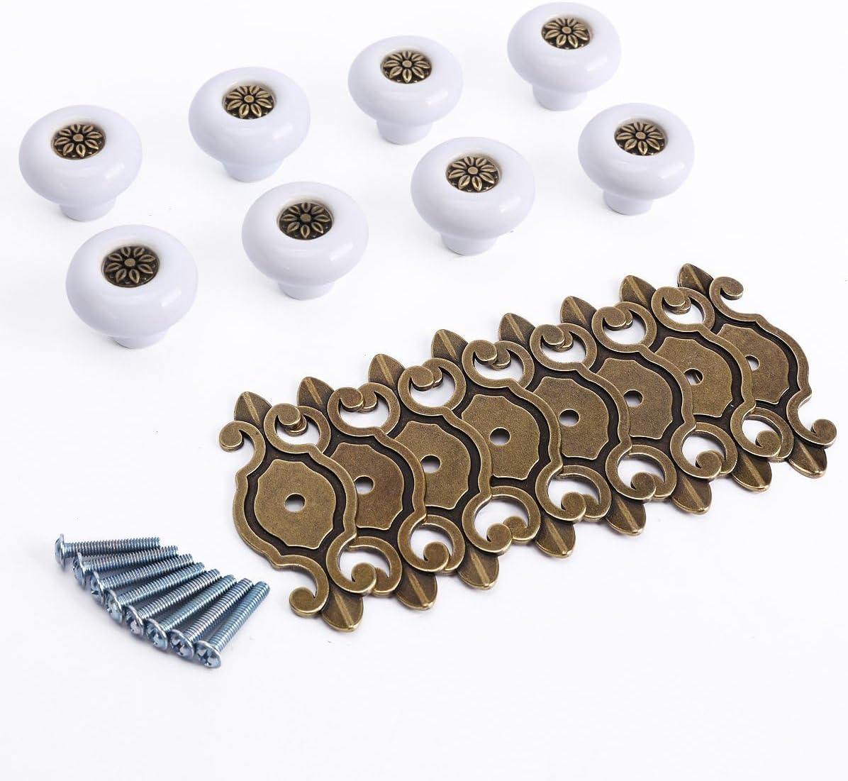 DescriptionThe item is a set of 2pcs elegant and retro style door knobs handles, which are mainly made of hard zinc alloy and ceramic materials with fine workmanship, and can be for cabinet, drawer, bin, dresser, closet, cupboard, The metal handle can help you create a stylish and complete look, comfortable for you to hold. With easy to install and to use, it is really a wonderful door cupboard handle knob for choice.Features- 2 pieces of the retro style metal knobs handles in one set will be sold together.- Color: mainly white & bronze.- Material: zinc alloy and ceramic.- Size: Total length: 74mm. Height: 26mm. Width: 74mm.- and Kitchen Cabinet Cupboard Drawer Door Knobs Metal Handles.- VintaRetro Style metal knob handles, very delicate and attractive.- your kitchen cabinet, dresser drawer, bookcase, door and so on.- Each knob is equipped with one screw for easy to install.2 * VintaRetro Style Cabinet Cupboard Drawer Door Knobs Metal Handles (White+Bronze)2 * Mounting ScrewsItem specifics:Material: Bronze supplies: WoodworkingOrigin: Mainland ChinaCertification: NONE