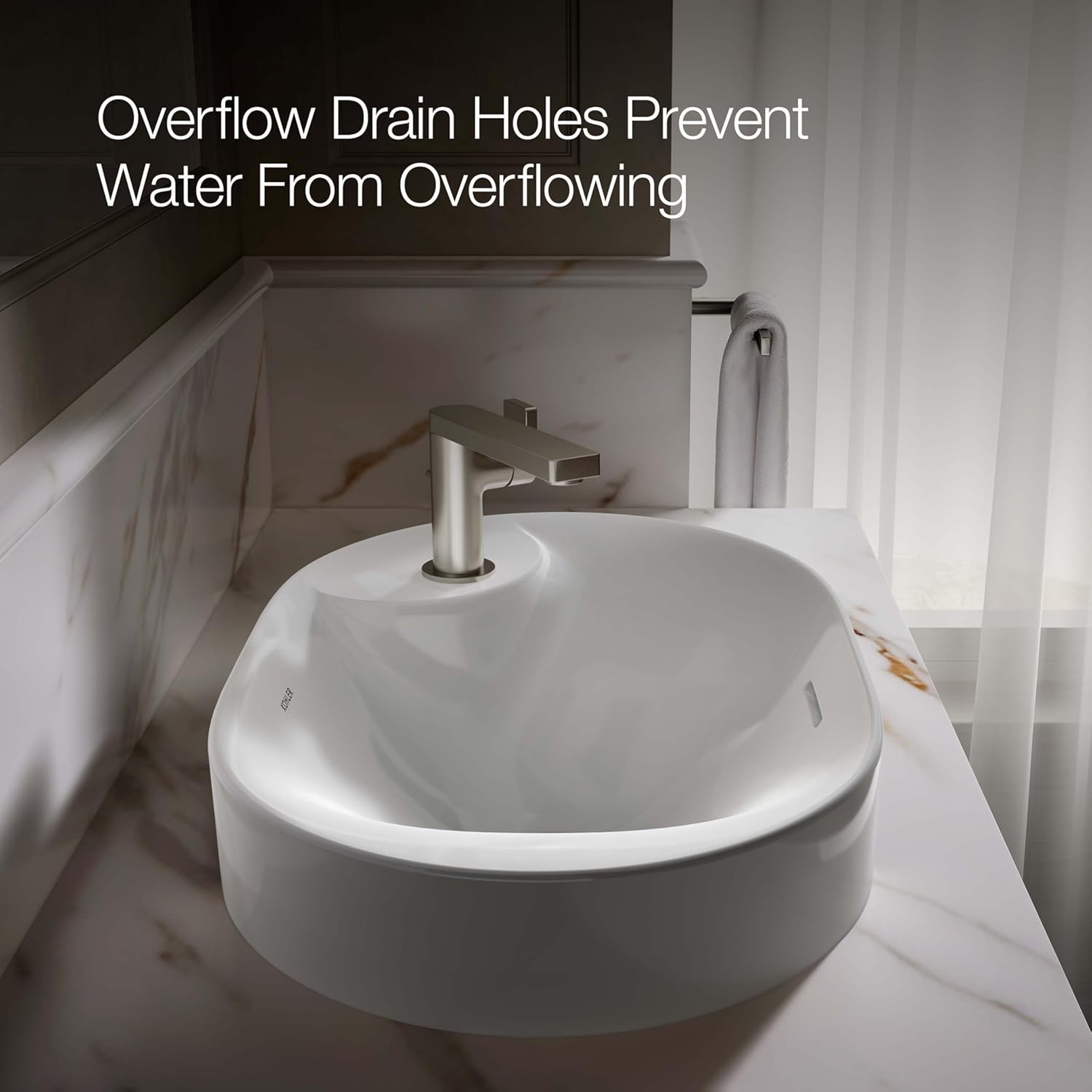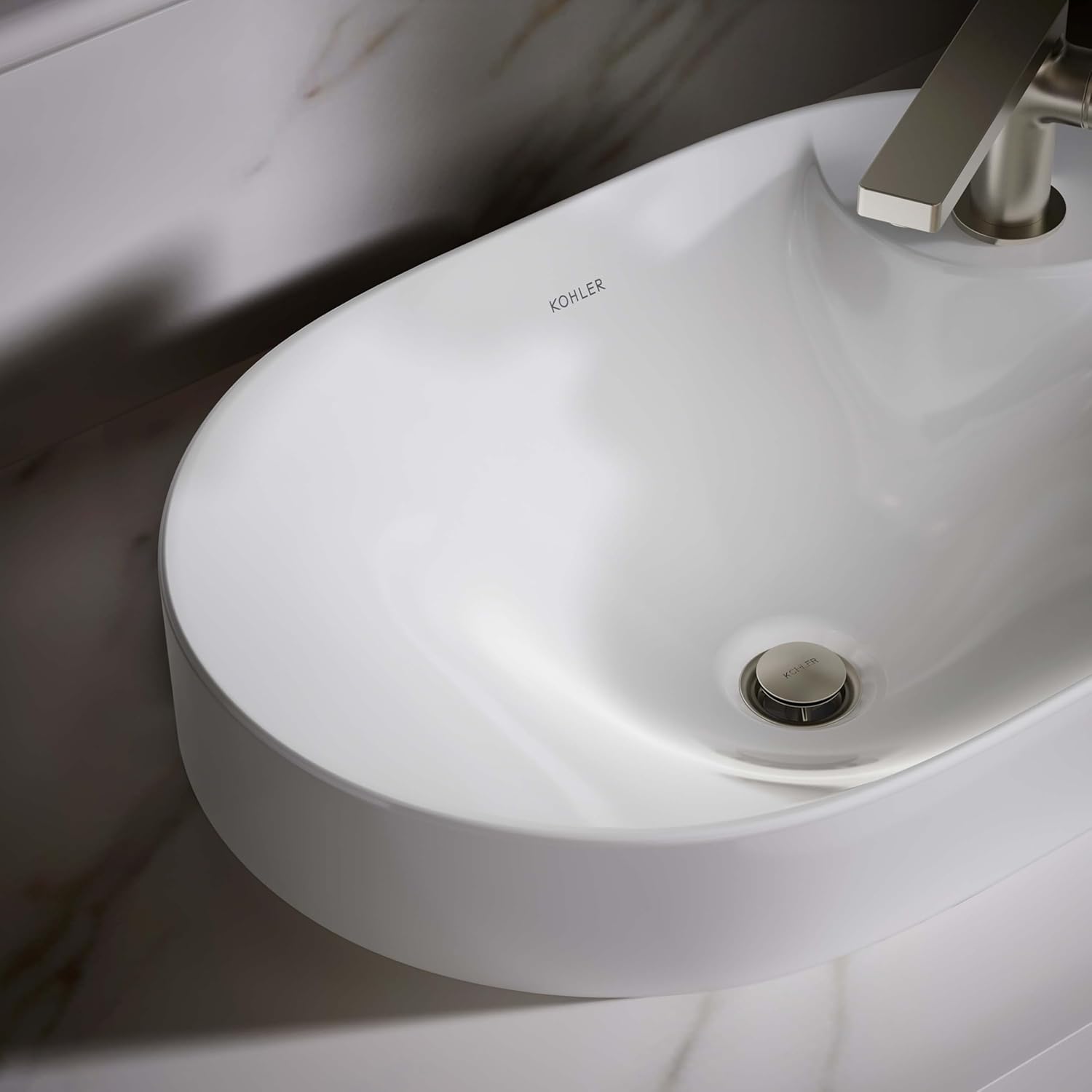 At Kohler, we make it our business to help you create the bathroom space of your dreams. Every Chalice vanity bathroom sink features a sleek and contemporary design that is pill-shaped with soft curves. The vessel design sits on the vanity bathroom top for a simple style that stands out. This bathroom sink basin includes a single faucet hole and pairs well with a variety of faucets.