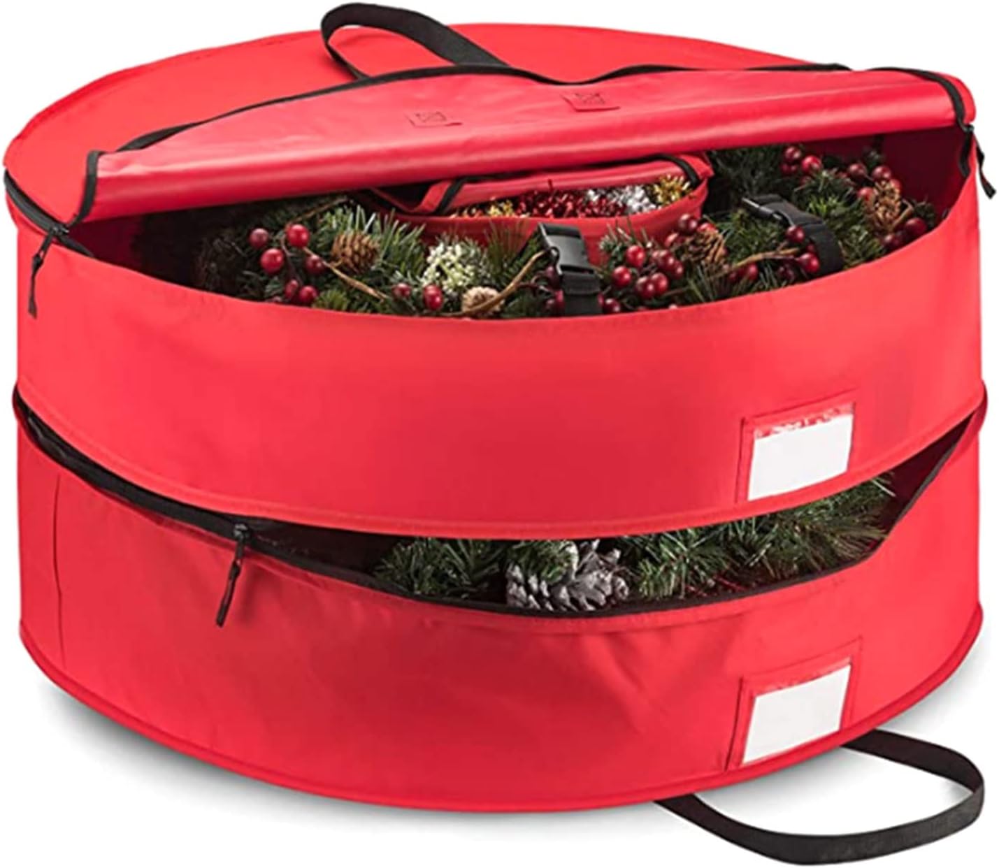 Layers Storage Bag Home Supply Gift Sorting Bags Large Capacity Organizer for Case for Wreath Wear Res container oxford cloth double layers large capacityFeatures:3 colors for you to choose.The attached handles make the bags easy to carry.Design with zipper, dust proof and keep clean inside.Large capacity and multifunctional, you can store not only garlands but candies, sundries as well.material, durable and tear resistant, has long service for time, you can use it year after year.Specifications:Material: 600D Oxford ClothSize: Approx. 61x40 for cm/24.02x15.75 inColor: Red/Green/BlackPackage Includes:1x Wreath Storage BagNote:Please allow 1-2cm errors due to manual measurement, make sure that you do not mind before you order.Due to the difference between different monitors, the picture may not reflect the actual color of the item.