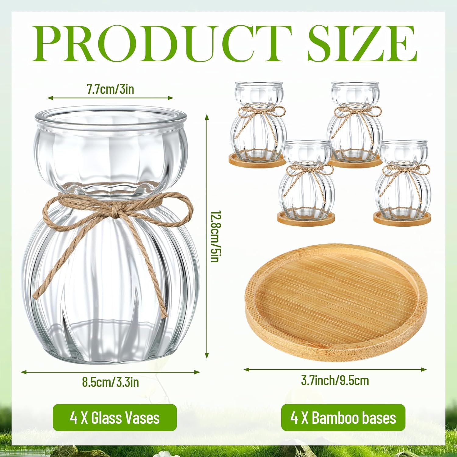 Features: Meaningful gift: Gift the joy of growing an avocado tree to friends and loved ones with our avocado growing kit. Ideal for birthdays, housewarmings, or any special occasion for those who adore plant life. It avocado seed vase can be apply as a propagation station for small plant cuttings, and also small vases for rose, tulip and orchid. Applicable to multiple scenarios: Designed with versatility in mind, our avocado seed vase set can be apply in a variety of settings. Whether you place them on your living room, dining table, bedroom, office desk, kitchen shelf, or table, these transparent glass bottles are unobtrusive yet eye catching. Specifications: Material: Vases: glass Coasters: bamboo Color: Vases: clear Coasters: natural wood color Size: as shown in the figure Package includes: 4 x Vases 4 x Coasters Notes: Manual measurement, please allow slight errors on size. The color may exist a slight difference due to different screen displays