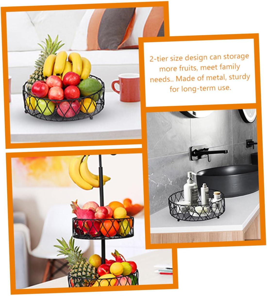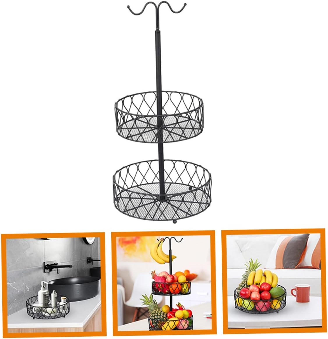 Package List 1 x storage basket Characteristics -Size:61.19X30.00X30.00cm/24.05X11.79X11.79in banana hanger with basket -Color:Black banana hanger -Material:Iron fruits basket - Made by iron material, this storage basket is and very strong and long-lasting to use organizer for fruit. - Two-tiered fruit basket saves counter space and organizes fruits. Hooks can hanging bananas 2 tier fruit basket. - Large size design accommodates more fruits. Sleek finish adds a touch of elegance to any kitchen fruit holder for kitchen countertop. - for scenes such as , a desktop basket, increasing the of life vegetable baskets for kitchen. - Wire basket is a simple storage for placing fruits, snacks, or some other small serving food fruit basket for kitchen counter.Goods Informationfruit holder for kitchen Large storage space can store more things, and can bring much help for your daily life.fruit baskets This storage basket providing plenty of room to organize snacks, fruits, vegetables and other goods.organizer for fruit This is a storage basket, manufactured with iron material which is reliable and to use