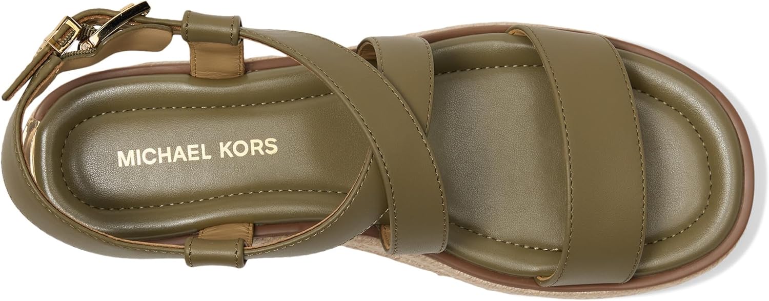 Espadrille flatform flat sandal polished with our iconic “MK” initial buckle keeper set on a woven double jute platform constuction for a bohemian twist is aseasonal must-have ready for everyday wear with its padded insole. We love how the ankle strap and chunky sole combine to create the illusion of longer legs.