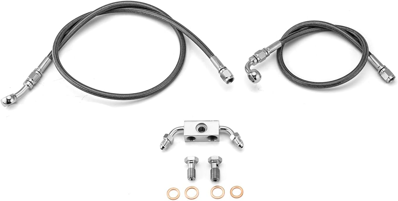 Fitment Compatible with Harley Dyna w/ ABS 2012-2017 Fit Dyna Street Bob - FXDB 2012-2017 Fit Dyna Super Glide Custom - FXDC 2012, 2014 Fit Dyna Switchback - FLD 2012-2016 Fit Dyna Wide Glide - FXDWG 2012-2017 Specifications Item: Extended Length ABS Hydraulic Front Brake Line Kit Color: Black Used On: 12"-14" Handlebar Overall Length: 53.5"(1358.9mm) Upper Length:32.5"(825.5mm) Lower Length:21"(533.4mm) Outer Transparent Tube Material: PVC Outer Tube Material: Polished Stainless Steel Preparation Inner Tube Material: Teflon(PTFE, Temperature resistance from -70°C to 260°C) Replace for Part Number: 44084-12A,42935-12A ,42927-12A,42940-12A