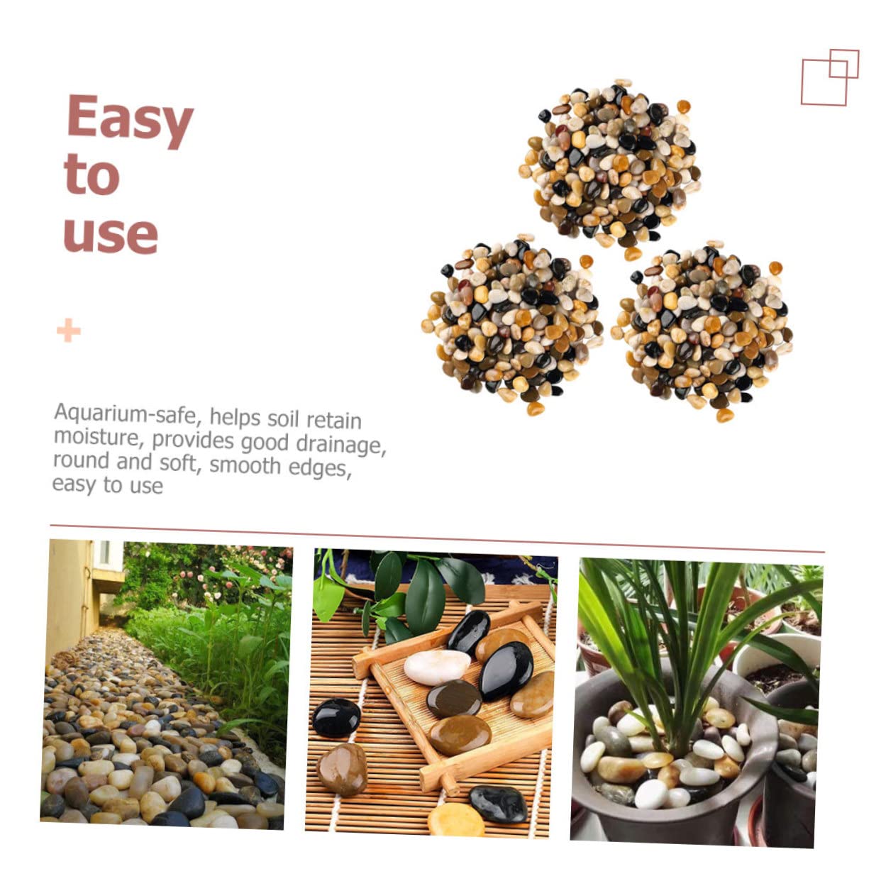 Package List 3 of Decorative 2-4cm Pebbles (500g for each pack) Features -Size:3.50X3.00X2.00cm/1.38X1.18X0.79in ornamental stones -Material:Stone gravel for fish tanks -Color:Multi landscaping pebbles - They are made of premium stone material and with good workmanship, not easy to break or fade gravel for garden. - There are enough quantity of stones that can meet your different kinds of decorating needs. decorative stones. - The unique design and craftsmanship ensure these pebbles' popularity and practicality fish tank stones pebbles. - They your fish tank or flower pots seem more colorful and full of natural breath ornamental pebbles. - With these decorative stones, your fish tank will become more colorful and your fish in it will become more dynamic small stone decorations.Goods Informationdecorative stones wanna buy some fish tank ornaments? If yes, you can consider our pebble stones decor.small stone decorations It can help make your fish tank and flowerpot no longer look monotonous.gravel for garden You can also use them to decorate garden, park, flowerpot, etc.landscaping stones Adopted of , it is not easy to damage and break