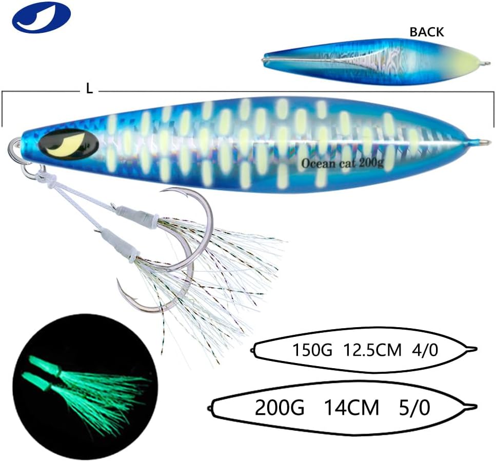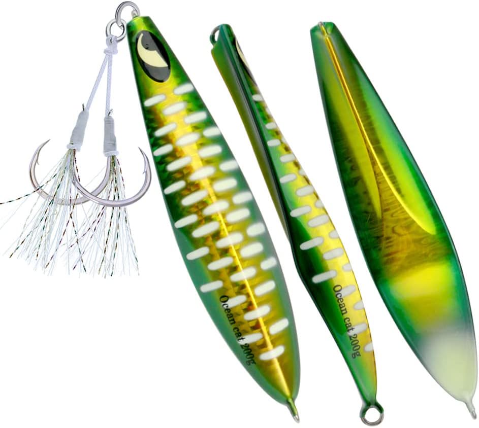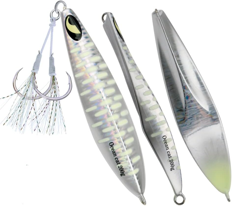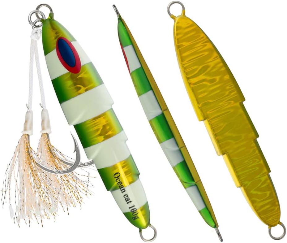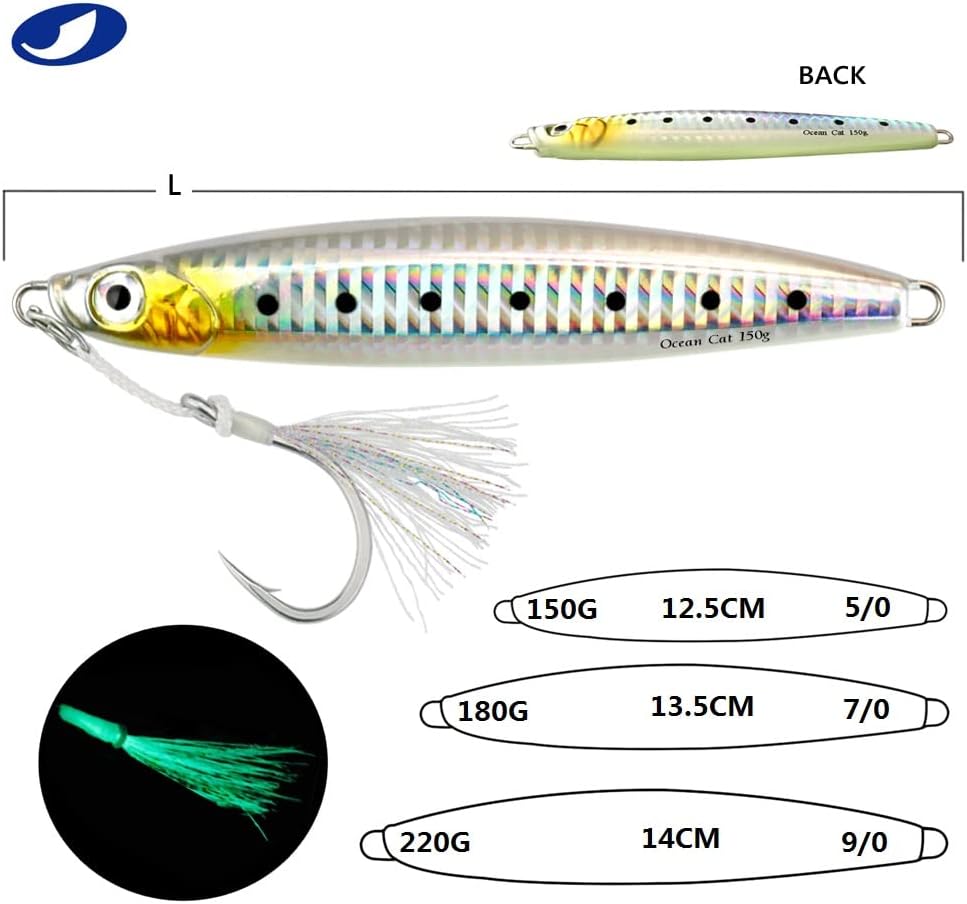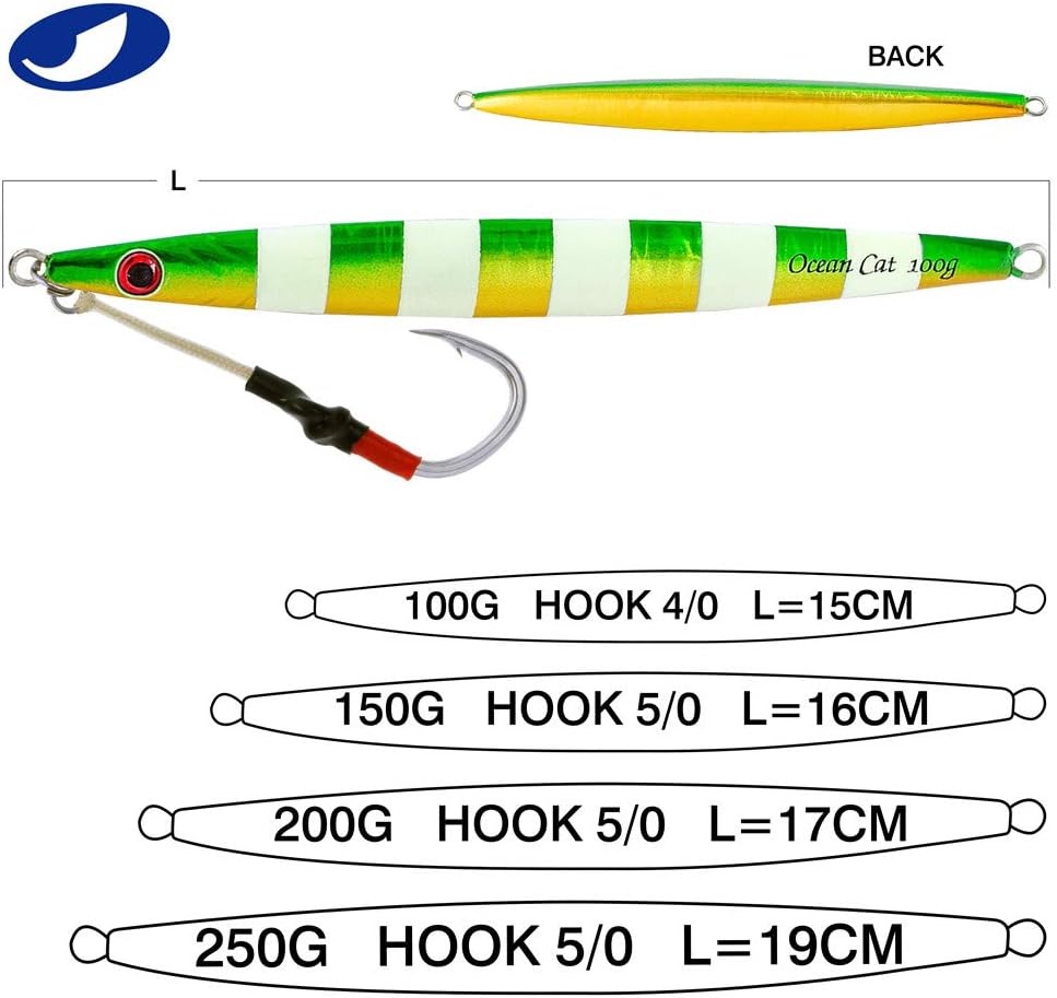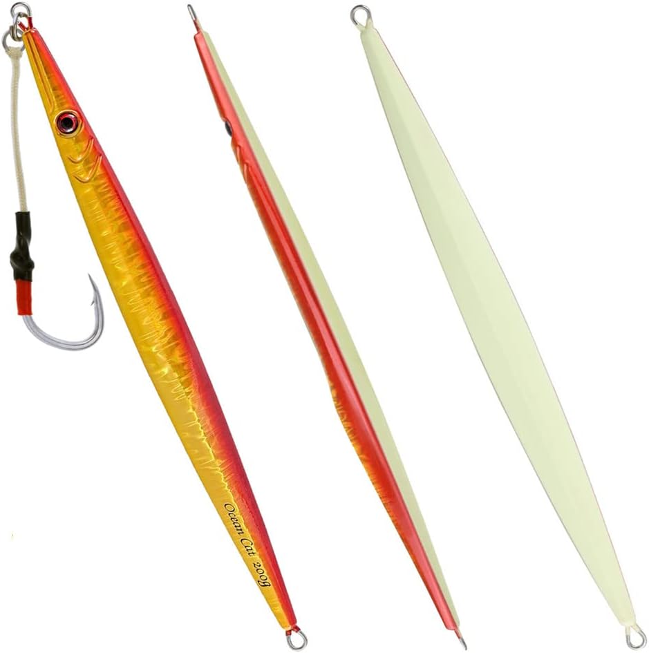 1. Jig: A versatile and dynamic fishing lure, the jig is designed with a weighted head and a single hook to imitate the movement of prey. The compact size makes it ideal for intricate presentations, offering precise control over depth and action. Utilizing its aerodynamic design, anglers can effortlessly cast the jig over long distances, reaching hidden hotspots that are beyond the reach of conventional lures. 2. Glow: The addition of glow properties to our fishing lures elevates their effectiveness even in low-light conditions. These lures are crafted using cutting-edge photoluminescent technology, enhancing visibility underwater while attracting fish from afar. By absorbing natural or artificial light during charging time, these glow jigs offer prolonged illumination in deep waters, ensuring better visibility and increased chances of enticing more bites. 3. Slow Pitch: Embracing the innovative technique known as slow pitch jigging, this lure offers unrivaled control and enticement for various saltwater speciesl thanks to its unique design features. With an elongated body shape and slender profile, combined with an optimized weight distribution system, our slow pitch jigs enable a refined and controlled approach during every retrieve cycle – resulting in lifelike movements that replicate injured or distressed baitfish effortlessly. 4. Saltwater Fish: Tailored explicitly for saltwater angling experiences with larger predatory fish species like tuna or grouper—these fishing lures have been engineered to withstand the harsh marine environment without compromising performance even under immense pressure or rapid current flows.These durable materials guarantee exceptional longevity against rusting or deterioration when exposed to corrosive saltwater elements,resulting in a reliable tool that remains effective trip after trip. 5. Kit: Our comprehensive kit provides all-in-one convenience by incorporating everything an angler needs for successful fall saltwater fishing se