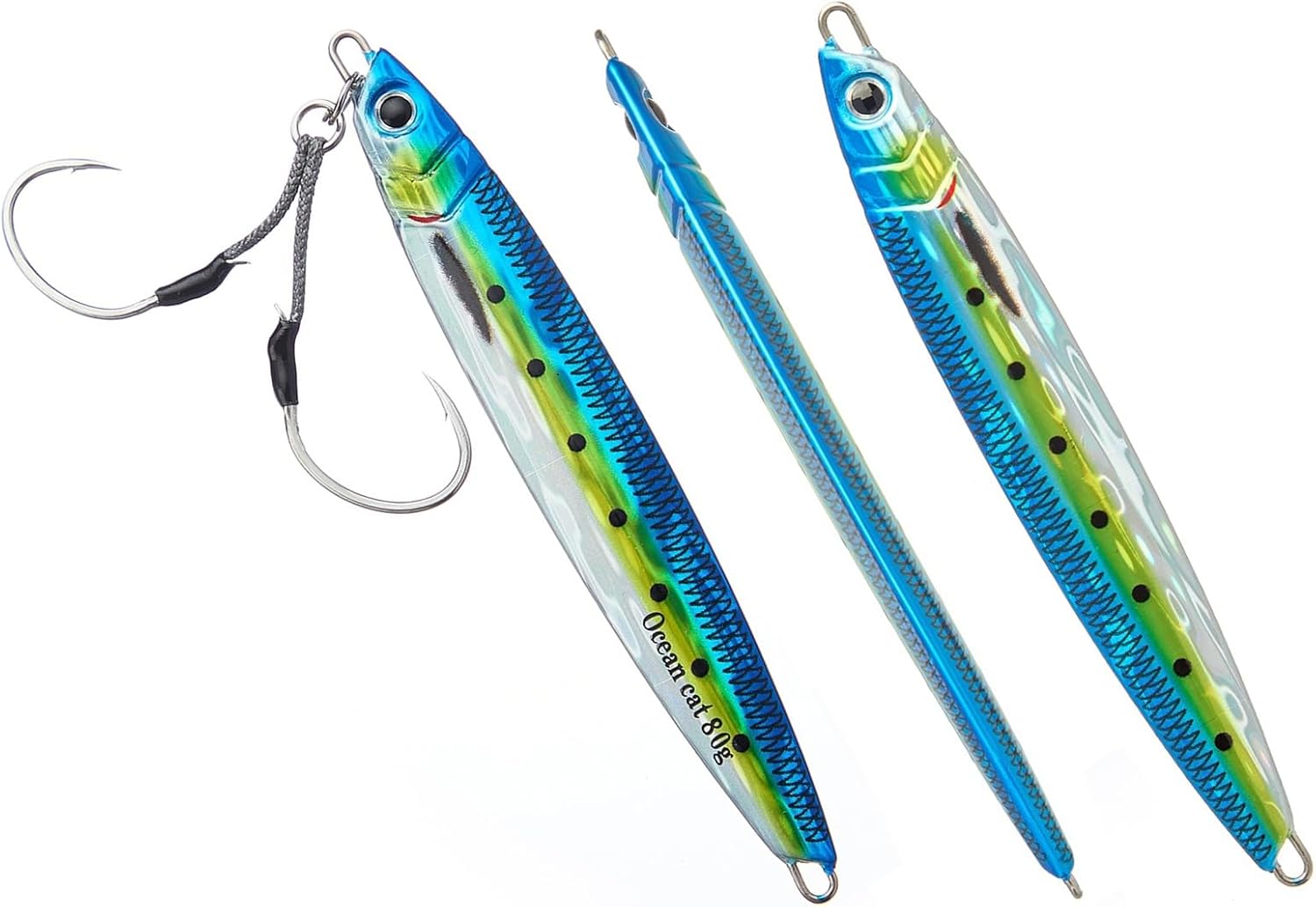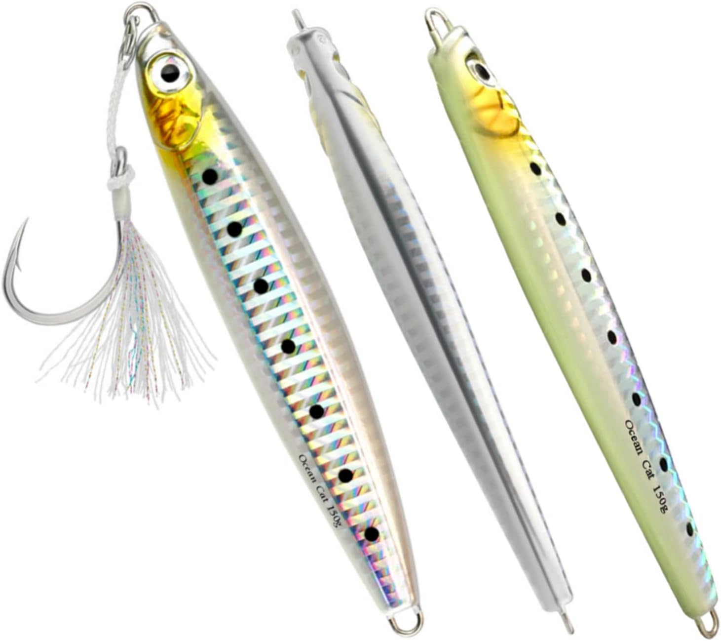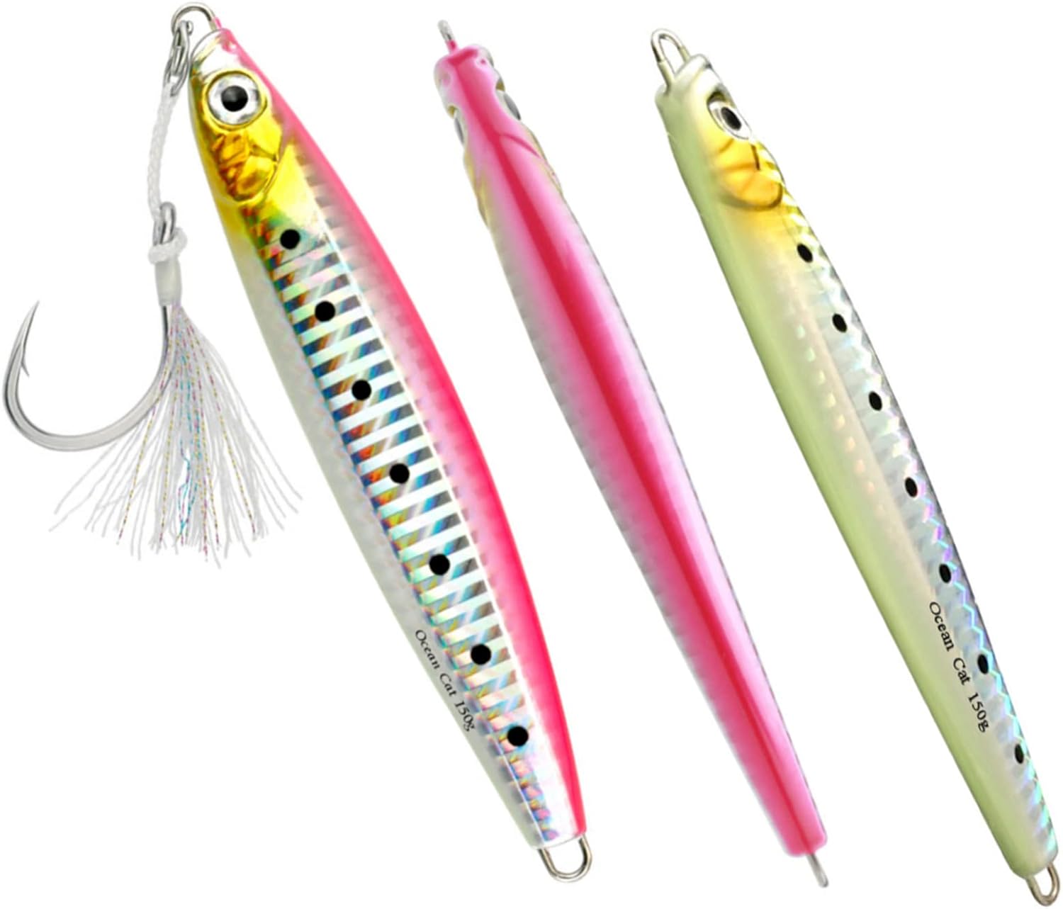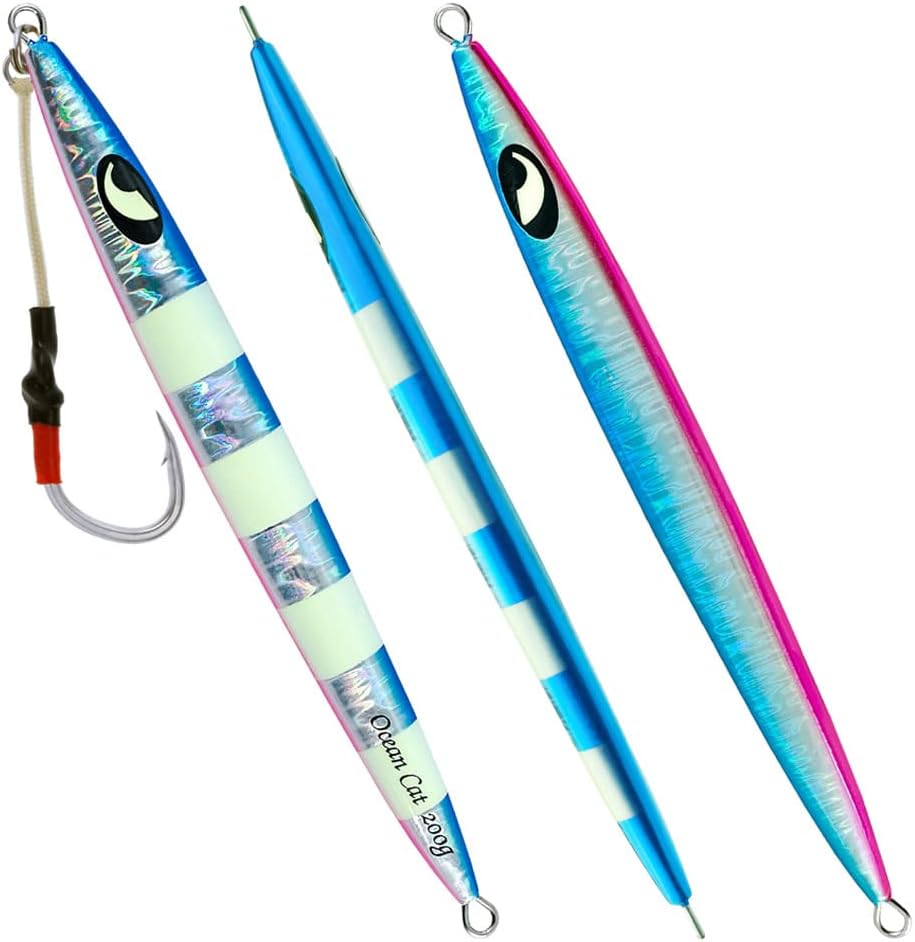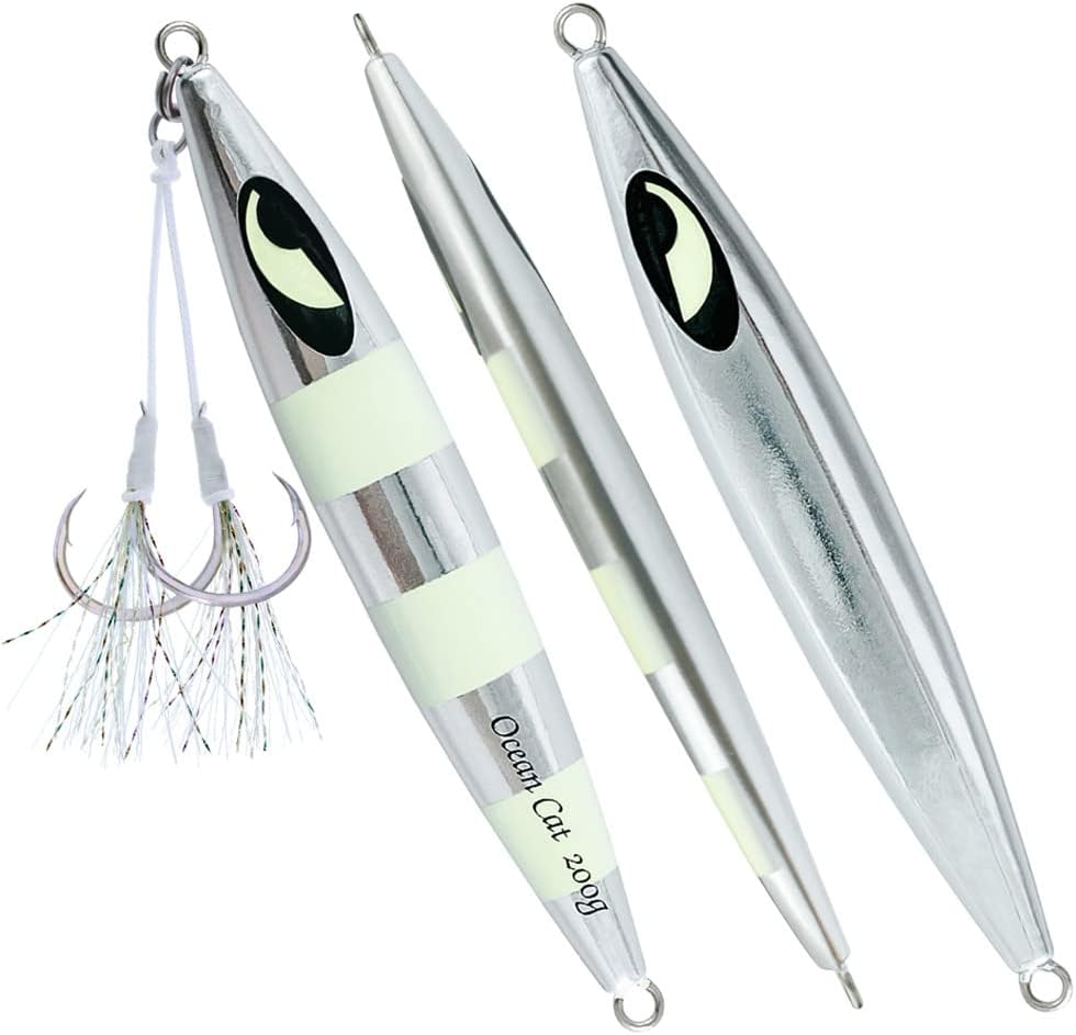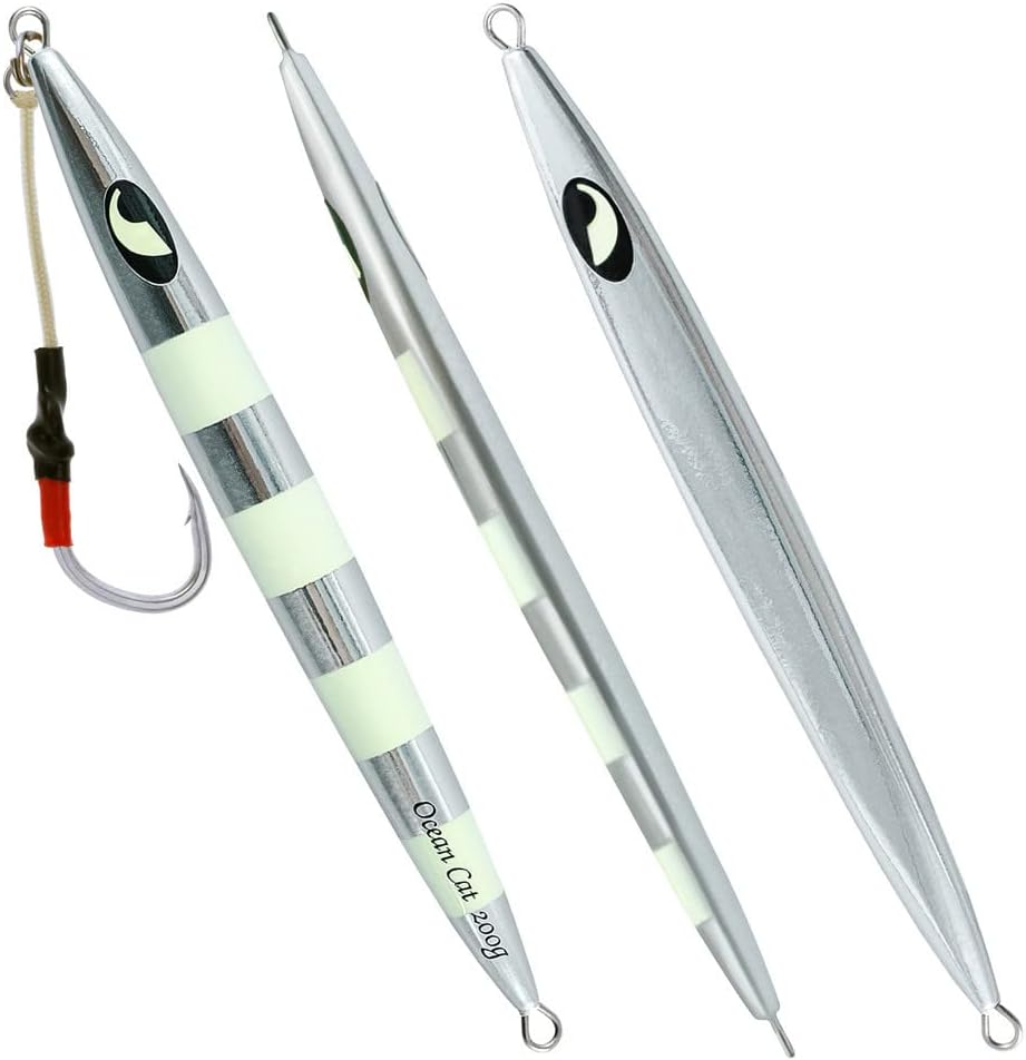 1. Jig: A versatile and dynamic fishing lure, the jig is designed with a weighted head and a single hook to imitate the movement of prey. The compact size makes it ideal for intricate presentations, offering precise control over depth and action. Utilizing its aerodynamic design, anglers can effortlessly cast the jig over long distances, reaching hidden hotspots that are beyond the reach of conventional lures. 2. Glow: The addition of glow properties to our fishing lures elevates their effectiveness even in low-light conditions. These lures are crafted using cutting-edge photoluminescent technology, enhancing visibility underwater while attracting fish from afar. By absorbing natural or artificial light during charging time, these glow jigs offer prolonged illumination in deep waters, ensuring better visibility and increased chances of enticing more bites. 3. Slow Pitch: Embracing the innovative technique known as slow pitch jigging, this lure offers unrivaled control and enticement for various saltwater speciesl thanks to its unique design features. With an elongated body shape and slender profile, combined with an optimized weight distribution system, our slow pitch jigs enable a refined and controlled approach during every retrieve cycle – resulting in lifelike movements that replicate injured or distressed baitfish effortlessly. 4. Saltwater Fish: Tailored explicitly for saltwater angling experiences with larger predatory fish species like tuna or grouper—these fishing lures have been engineered to withstand the harsh marine environment without compromising performance even under immense pressure or rapid current flows.These durable materials guarantee exceptional longevity against rusting or deterioration when exposed to corrosive saltwater elements,resulting in a reliable tool that remains effective trip after trip. 5. Kit: Our comprehensive kit provides all-in-one convenience by incorporating everything an angler needs for successful fall saltwater fishing se