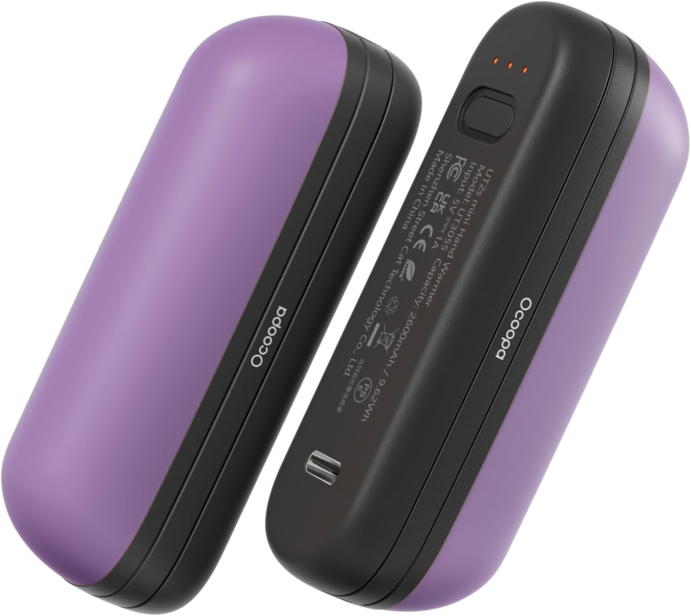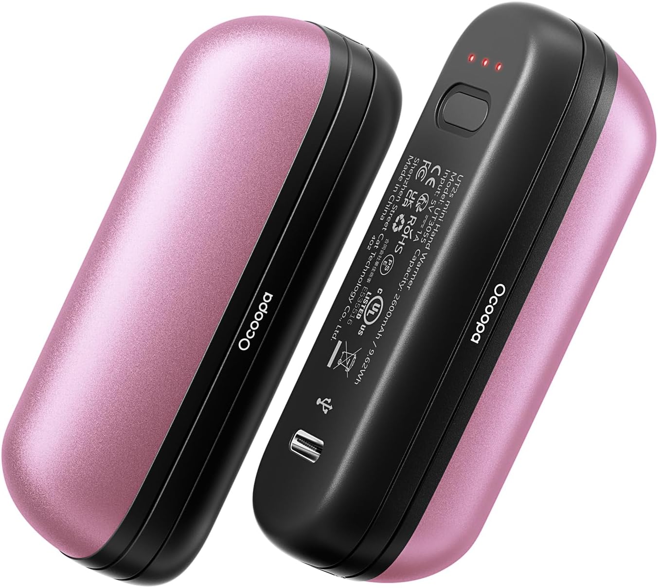 Don't let the cold weather hold you back. Stay warm and comfortable with our Upgraded Ergonomic Magnetic Hand Warmers. Portable Design Measuring at lipstick size, these hand warmers are ultra-thin and lightweight, making them incredibly easy to slip into your pocket or bag. Whether you're hitting the golf course, embarking on a camping trip, or dealing with chilly hands due to Raynaud's, our hand warmers have got you covered. Rechargeable Hand Warmers Experience instant heat at your fingertips! With just a 3-second warm-up time, these hand warmers provide rapid relief from the cold. Plus, they offer three heating levels that you can easily adjust with a single button press. Our hand warmers are UL certified for safety and designed with your skin's comfort in mind, so you can enjoy warmth without irritation. User-Friendly Features Using our hand warmers is a breeze:Press and hold the power button for more than 3 seconds to switch them on or off (indicated by a red light).Double press the button to check the battery level (indicated by a blue light).Short press the button to adjust the temperature across three levels (indicated by a red light). Customize your warmth to suit your needs! Specifications Input: 5V/1AWorking Hours: 4-6 hours each (two included)Charging Time: 3 hoursProduct Size: 3.4 x 1.2 inchesProduct 2 pack Weight: 5.3 ozWhat's in the Package? 2 x Rechargeable Hand Warmers1 x Dual USB-C Charging Cable1 x User Manual2 x Wrist Straps