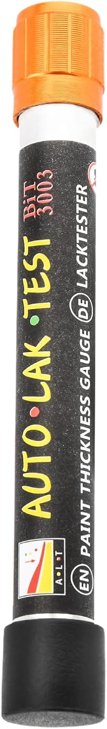 Features:【WHAT IT IS】It is a meter and a tester because it has the function of measuring the thickness of the varnish and the function of a quick test. The tester does not require battery power, calibration, and can be used for many years.【MAIN FUNCTION】Used to detect the thickness of paint coatings that are invisible to the eye on vehicles made of steel plates and galvanized steel. The tester can let you know if a car accident is concealed under the beautiful varnish.【MICRON COLOR SCALE】The tester has a color scale in microns, which makes it very easy to read the thickness of the varnish or putty, even for those who check the car for the first time.【COLOR INDICATOR】Black - coating thickness over 520 surface putty and varnish (putty amount about 0.5mm); Red - coating thickness of 300-520 microns - surface behind metal plate + second layer of varnish; Yellow - coating thickness of 200-300 microns - after painting, (second layer of varnish); Green - original varnish coating thickness of 100-200 microns (warning: a thickness of 180 microns in newer models may indicate a thin second layer of varnish); Blue coating thickness of 0 to 100 microns - thin coating of varnish (varnish without foundation or repeatedly polished)【MAGNET ADSORPTION】Simple design with magnetic pen tip can stick to any curved surface or hard-to-reach places, professional car diagnostic tool, compact and portableSpecifications:Type: Paint Thickness GaugeMaterial: Aluminium, Plastic, MagnetColor: As PictureSize(L*D): About 13.7x1.26cm/5.39x0.5inchMeasuring Range: 0.02-0.5mmPackage Included:1pc x Paint Thickness Gauge