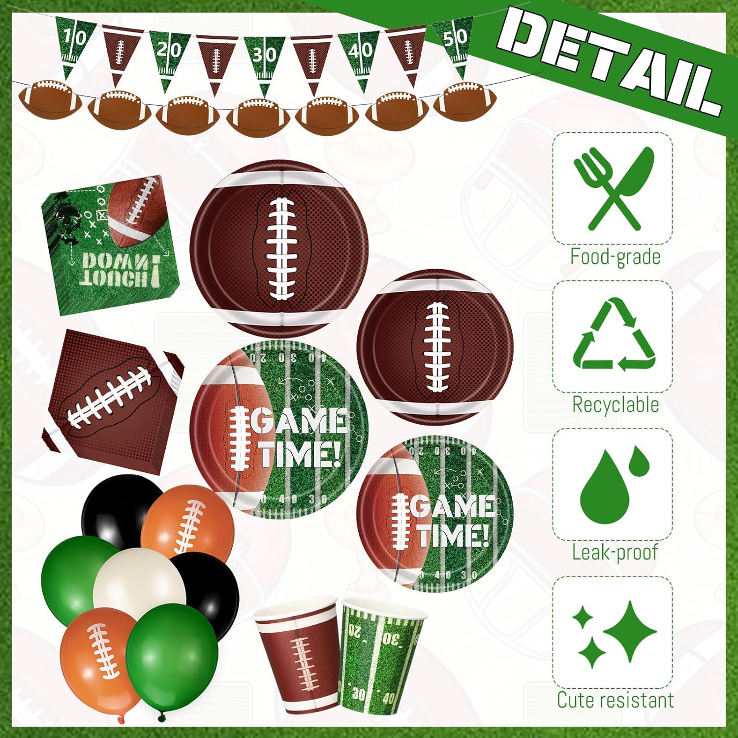 | Included Components | 100 x Napkins, 100 x Plates, 2 x Banners, 2 x Tablecloths, 50 x Cups |