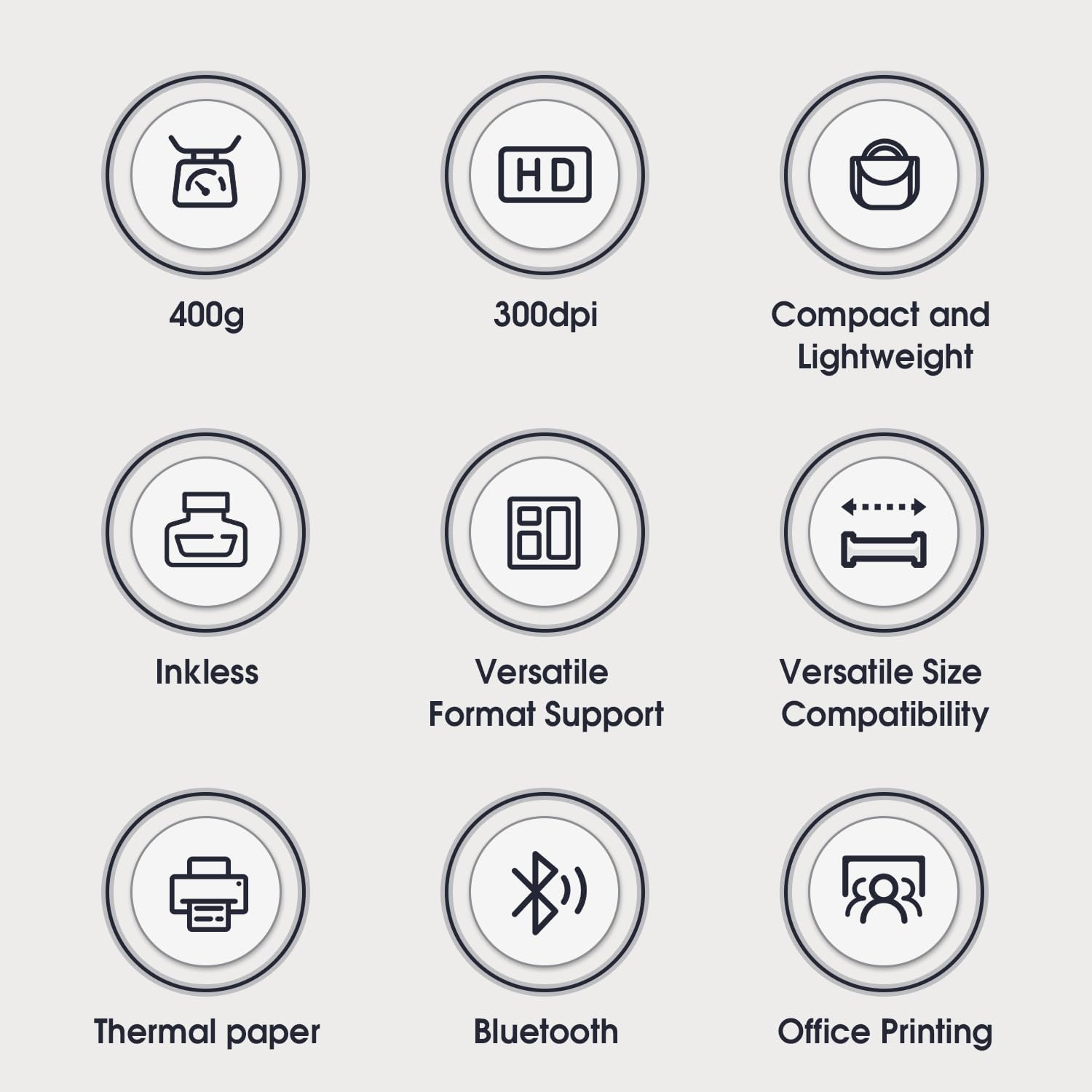 | Printer Type | Bluetooth Inkless Portable Thermal Printer |
