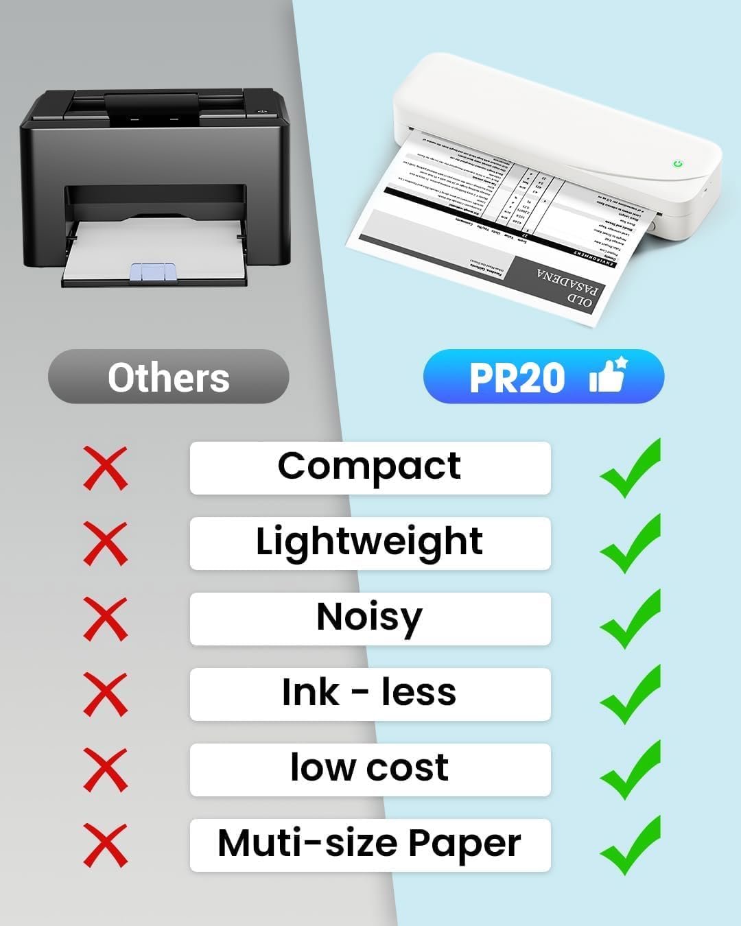 | Specific Uses For Product | Portable Printer Wireless for Travel, Bluetooth Thermal Printer PR20, Inkless Printer Support 8.5'' x 11'' US Letter & A4 Thermal Paper, Compatible with iOS, Android & Laptop for Office , Home, 300DPI |