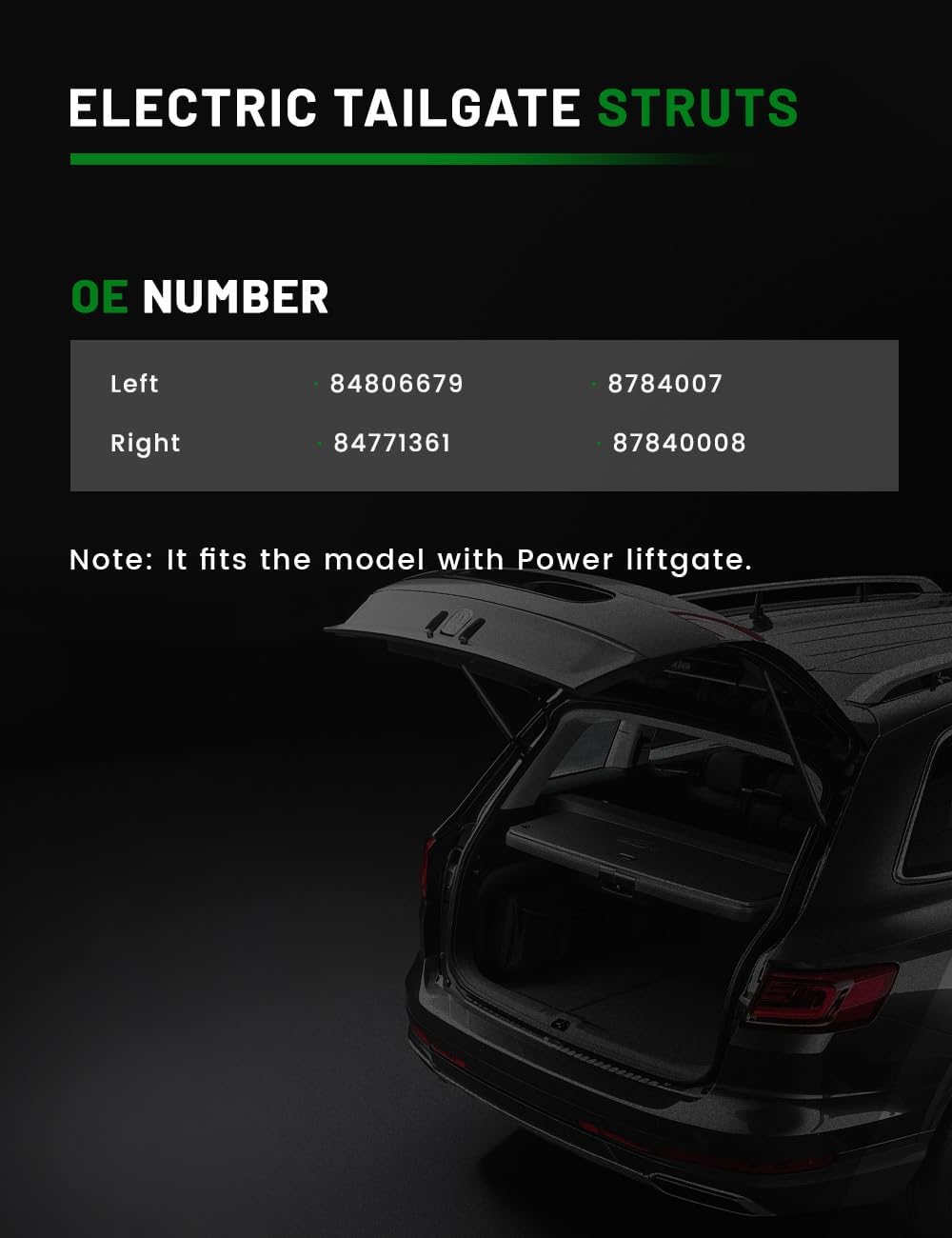 | Included Components | 1Pair Rear Liftgate Power Support Shock Strut |