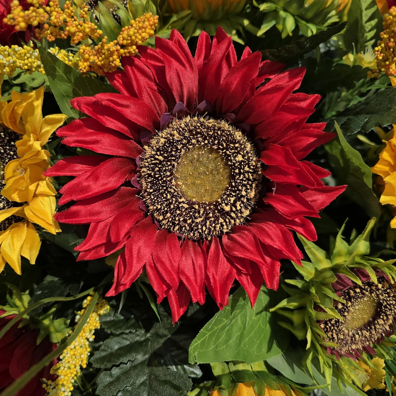 This headstone saddle is a grave decoration made with faux floral silk grave flowers and silk fern all mounted on a metal saddle form.