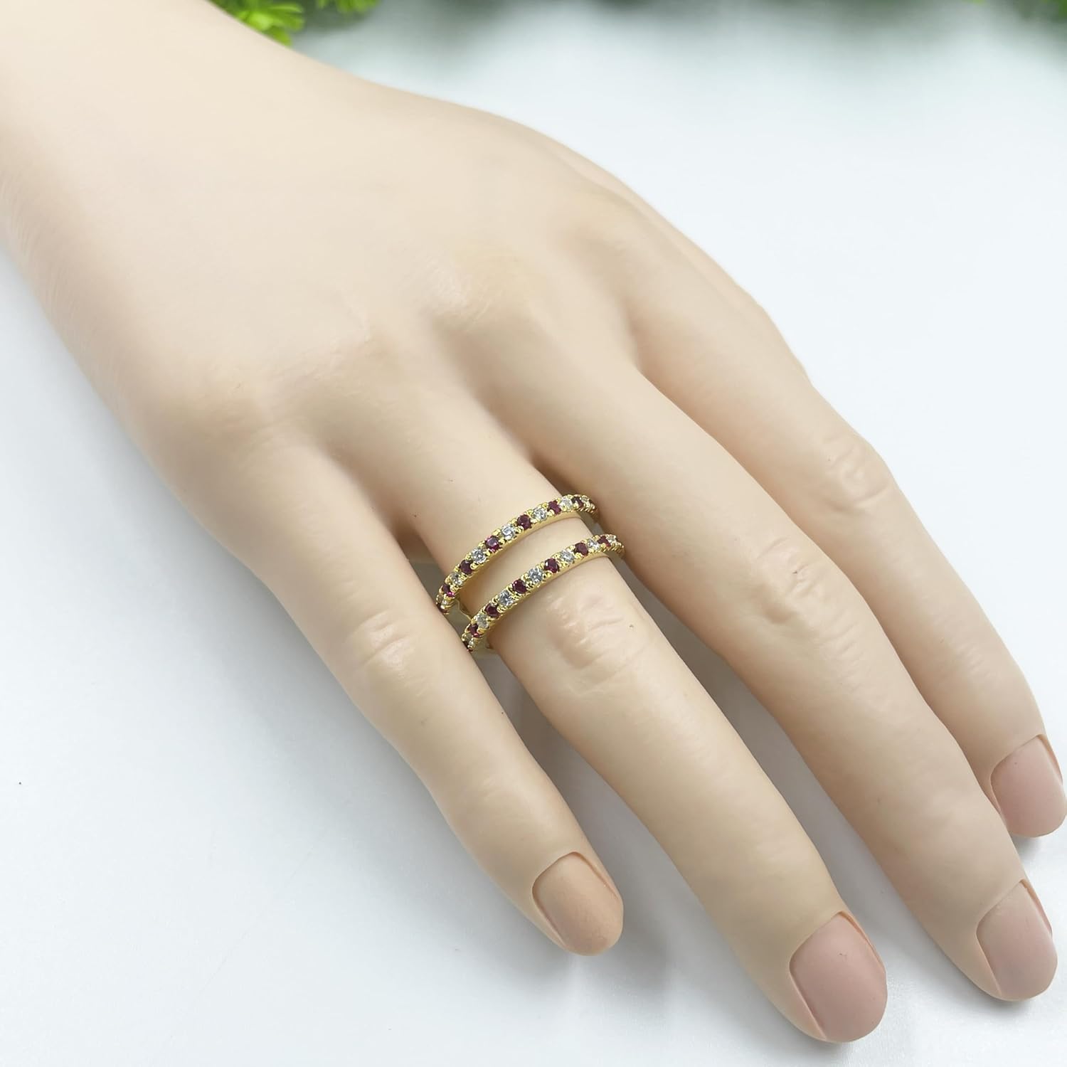 This Handmade Enhancer Guard Matching Band is made from high-quality 925 sterling silver, known for its lustrous appearance and durability.. It is available in 14K White, Yellow, and Rose Gold Plating with Highly Glossy Finished. It features Simulated Round Cut Ruby & Diamond Stones set in Prong Setting. The Enhancer Guard Matching Ring is easy to use, Perfect for any occasion.