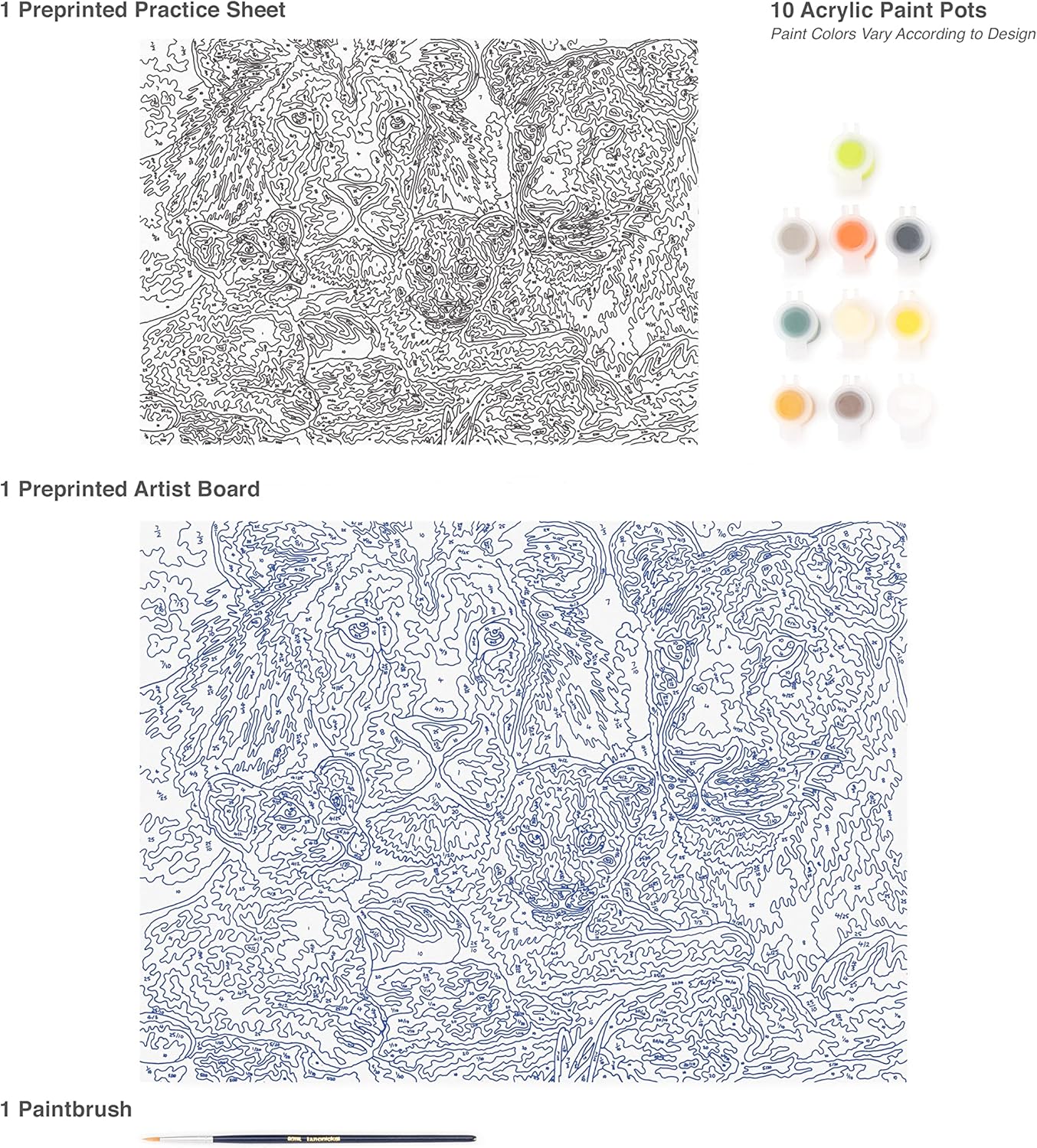 Simply follow the numbers. Royal & Langnickel has created a brilliant project for all ages. The painting by numbers kits are a terrific way to learn composition, plus a great stepping stone for painting on your own. Each project includes a pre-printed artist board, practice sheet, acrylic paints, paint brush and instructions. The large, 12-3/4-inch by 15-3/4-inch, format of the junior large painting by numbers was selected to offer a project that was a bit more challenging than ourjunior small series and the introduction of color mixing takes it to the next level. Conforms to ASTM D4236. Recommended for children ages 8 and up.