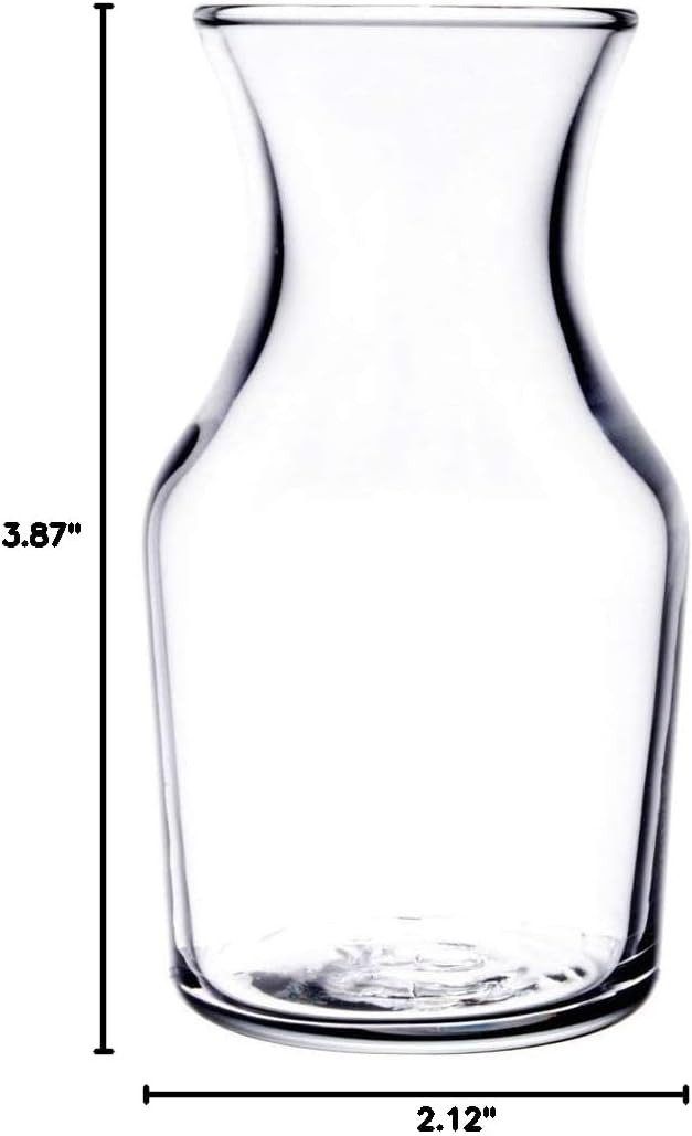 Set of 6 Libbey 718 Glass 4.125 Ounce (shoulder capacity is 3 ounce) Cocktail Decanter/Bud Vase Top Diameter: 1 3/4" Bottom Diameter: 1 7/8" Maximum Diameter: 2 1/8" Height: 3 7/8"