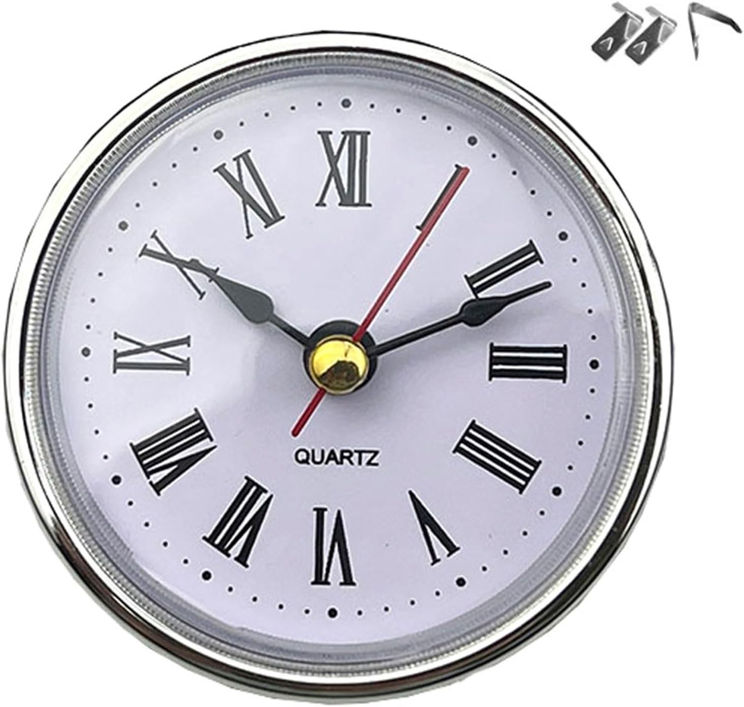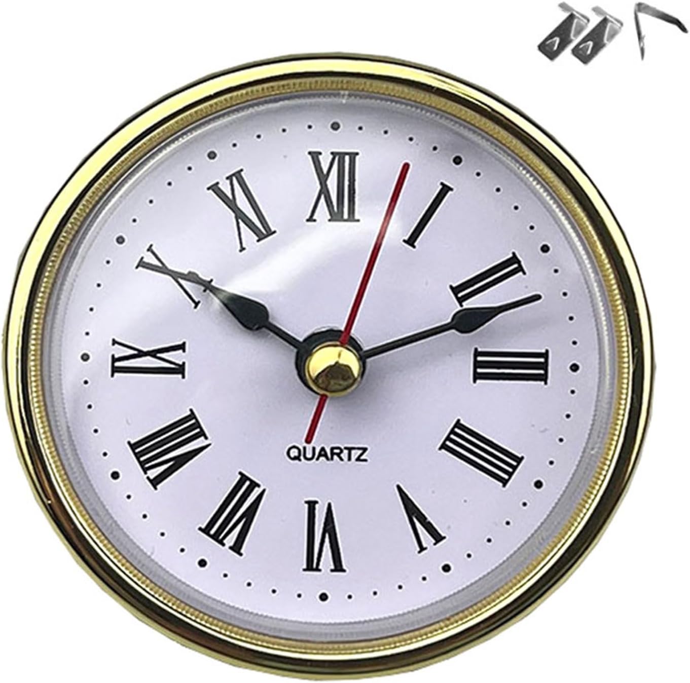 Small 65mm watch insert with round movement and easy to read Arabic/Optional numbers in gold/silver Features: Enhance your watch making projects with a small watch insert. It has a 65mm round round and easy to read white face with golden or silver tone Arabic/optional numbers. This clock insert is complemented by an electroplated finish and boasts a durable ABS construction to ensure long lasting performance and rust resistance. For watch enthusiasts, crafters and repairers, this insert is perfect for those who appreciate precision and fashion in their watches. Whether you are creating a new watch for your home, office or workshop or replacing an old watch face, this versatile insert will seamlessly work in a variety of settings. The included back cover and rubber gaskets provide a secure installation and increase the reliability of embedding into a crystal, ceramic or marble table clock. Specifications: Clock head diameter approx 65mm/2.56" Approx 55mm/2.16" back cover diameter Installation Depth Approx 14mm/0.55" Clock head: Abdominal muscles Frame: + Electroplating Frame Color: Gold/Silver Lettering: Arabic/Optional Package Includes: 1 x Small Watch Insert Note: There are two versions on the back of the clock, it will be sent randomly. Please allow 1-2cm error due to manual measurement. Please allow slight color difference due to different display resolution