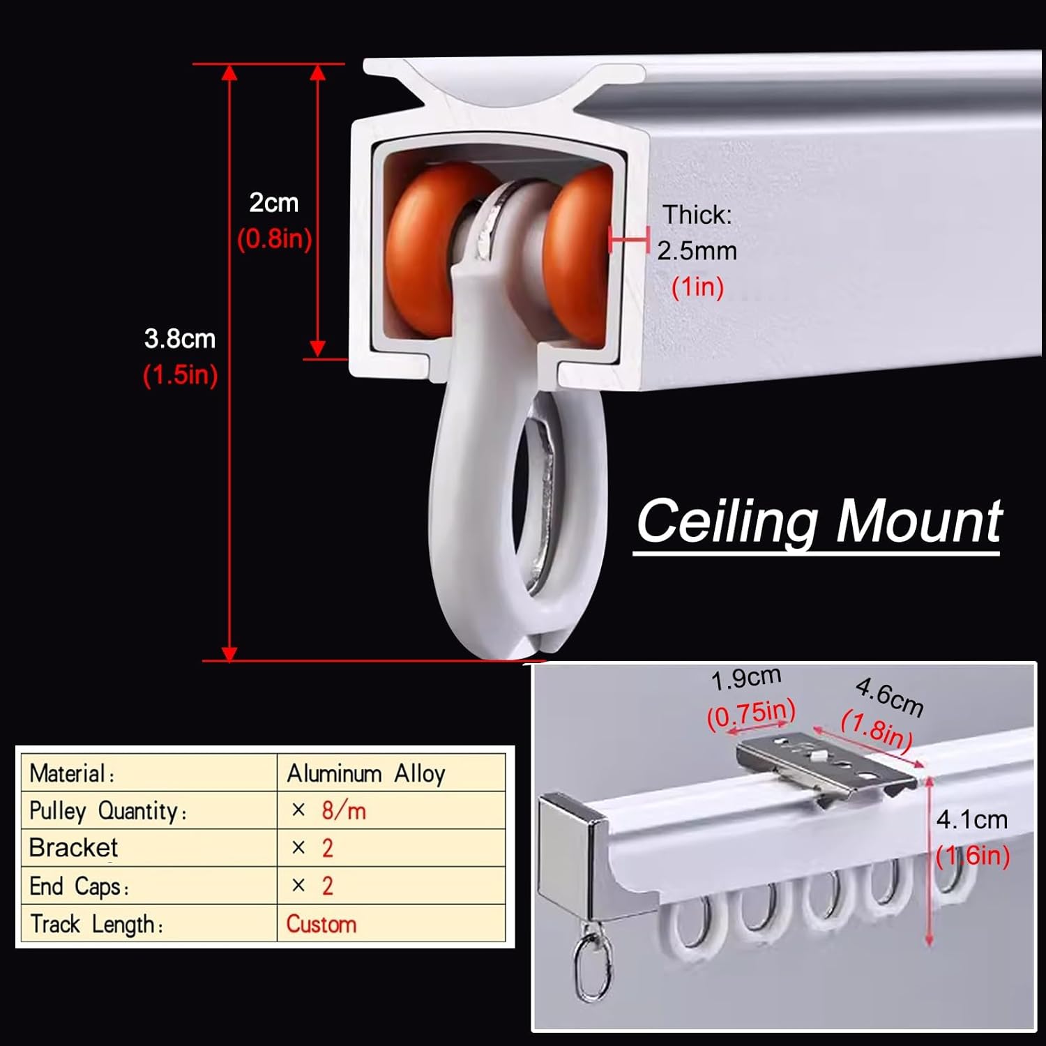 Elevate your living space with our premium Curtain Tracks, designed to enhance both functionality and aesthetics in your home. Perfect for a variety of settings, including bedrooms, living rooms, office spaces, and patio doors, our tracks provide an ideal solution for maximizing light blocking and creating privacy. **Key Features:** - **Silent Operation:** Enjoy the tranquility of our wrap-around silent rail, equipped with built-in silencer strips and bearing silent pulleys that ensure smooth, low-noise operation. - **Durable Design:** Made from high-quality aluminum alloy, our tracks are sturdy enough to support heavy fabric curtains without bending or breaking, offering long-lasting reliability. - **Smooth Gliding:** The innovative sliding track design minimizes friction, allowing your curtains to glide effortlessly, making it easy to adjust them as needed. - **Customizable Length:** Need a specific size? Our tracks are cuttable to fit your unique space. If you can't find the right length, simply reach out to us for assistance. - **Easy Installation:** Our comprehensive package includes all necessary accessories for straightforward assembly, including track rollers and detachable mount brackets for both ceiling and wall mounting options. **Specifications:** - Material: Aluminum Alloy - Color: White - Mounting Type: Ceiling Mount, Wall Mount - Non-bendable - Customizable Length **What’s in the Package:** - 1 × Curtain Track (includes accessories) For any questions or concerns regarding your order, please don’t hesitate to contact us. Please note that due to variations in lighting and screen settings, the color of the item may differ slightly from what is depicted in the images. Transform your space today with our Curtain Tracks and enjoy a blend of style, ease, and practicality!