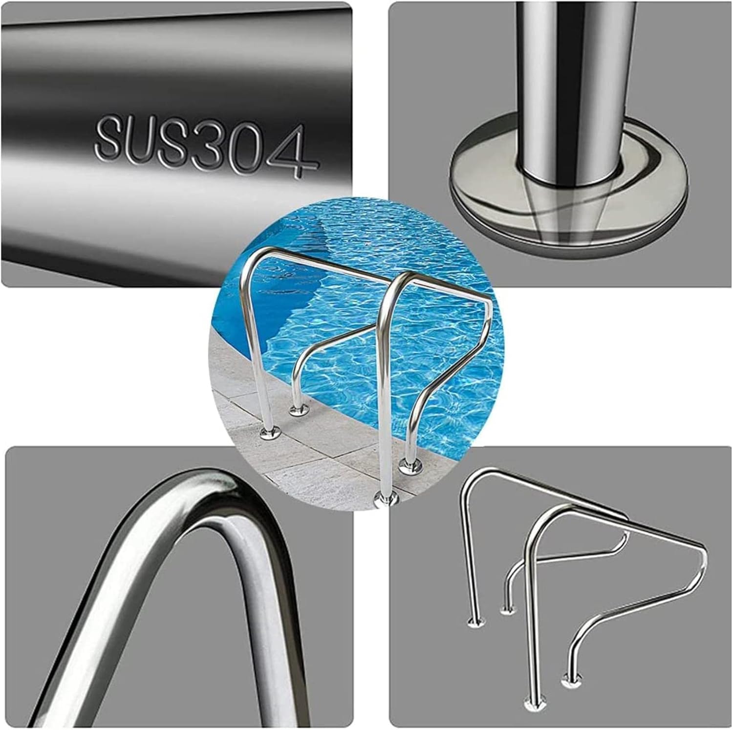 Our swimming are made of strong and stainless steel material, strong load-bearing, anti-corros, strong safe, suitable for indoor and outdoor, enjoy life.✍ Product name: stairs/pool railing ✍ This all-stainless steel il is very suitable for swimming pools of any size. The guide rail has a small footprint and is designed to take up minimal deck space while ering safe and firm support for water in and out. The stainless steel design eres that your will not rust and stain in the next few years. ✍Product specificats: --Material: 304 stainless steel --Color: silver --: smooth and polished --size:80 x 27×80cm (31.5"×10.6"×31.5") --Tube wall thickness: 1.0mm/1.2mm/1.5mm --Product list: 1 x swimming pool il ✍ Product features: --High-quali 304 stainless steel material, sturdy and . --Humanized curves, ing to the principle of fluid dynamics, to dete your pool well. --Easy to grasp, perfect and firm fit, help in and out of the pool, br/ing a sense of securi. --Simple bolt installat, easy installat. ✍ Maintenance: --When the stainless steel il is stained with dust, wipe it directly with a dry cloth. ✍ Note: --The fixed swimming pool ladder is very easy to install. We recommend that you use a hammer drill to drill holes in the concrete. ✍ After-sales service: We provide first-class quali and best service. If you are not satisfied after receiving the packa, we will provide you with a satisfac solut! If you have any quests, please feel free to contact us!