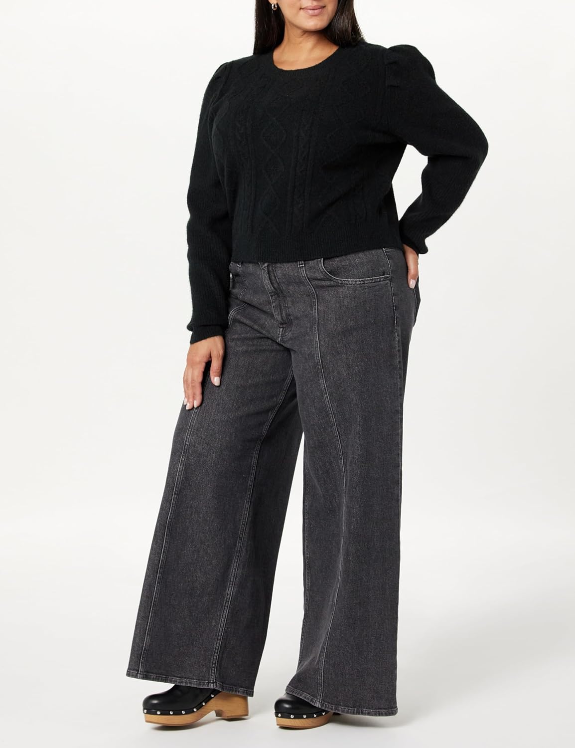 | Style Name | Gloria Puff Sleeve Cable-knit Sweater |