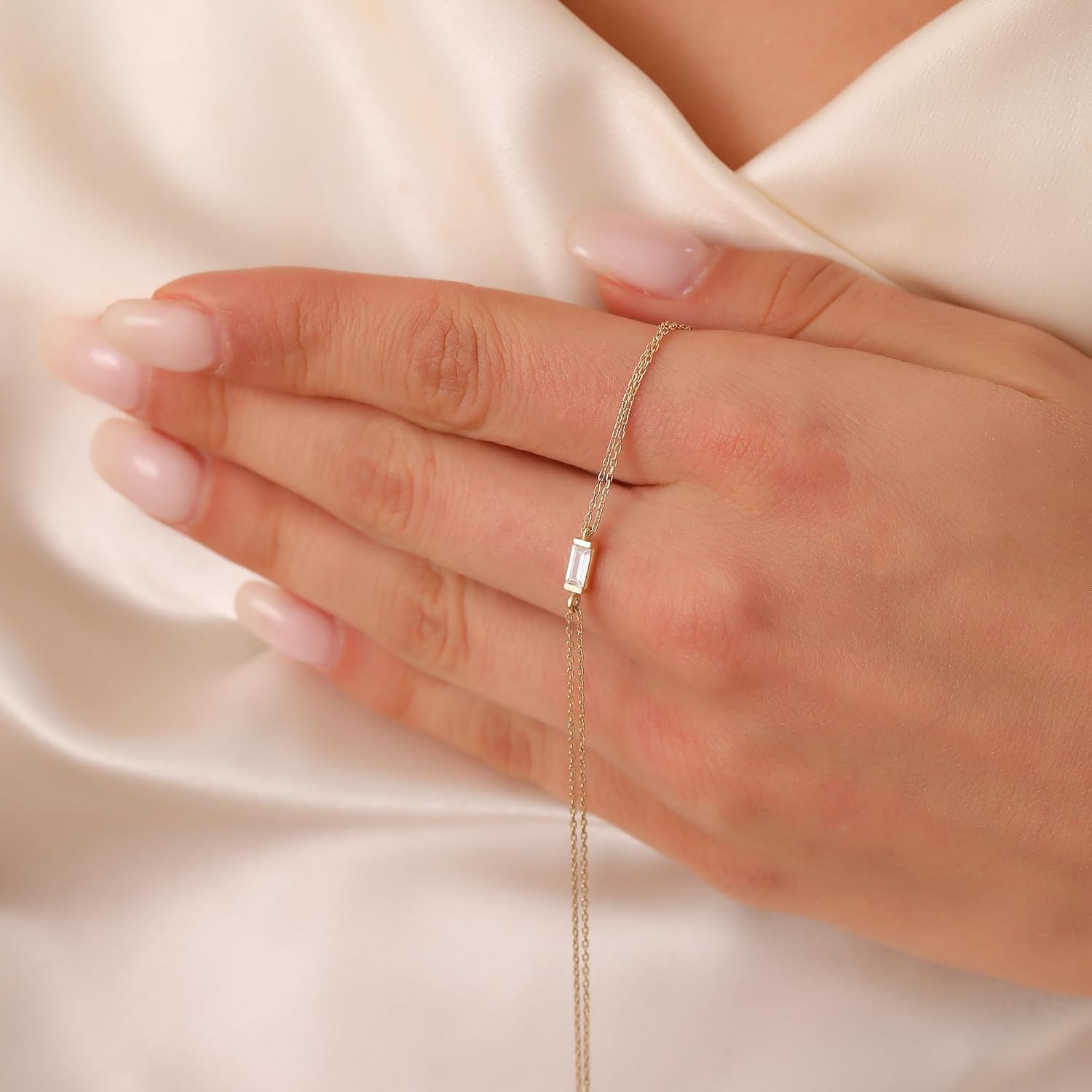 Tiny Baguette Bracelet, Handmade 14K Gold Baguette Bracelet, 14K Real Gold Anniversary Bracelet, Dainty initial Baguette Bracelet, Birthday Gift, Wedding Gift, Christmas Gift