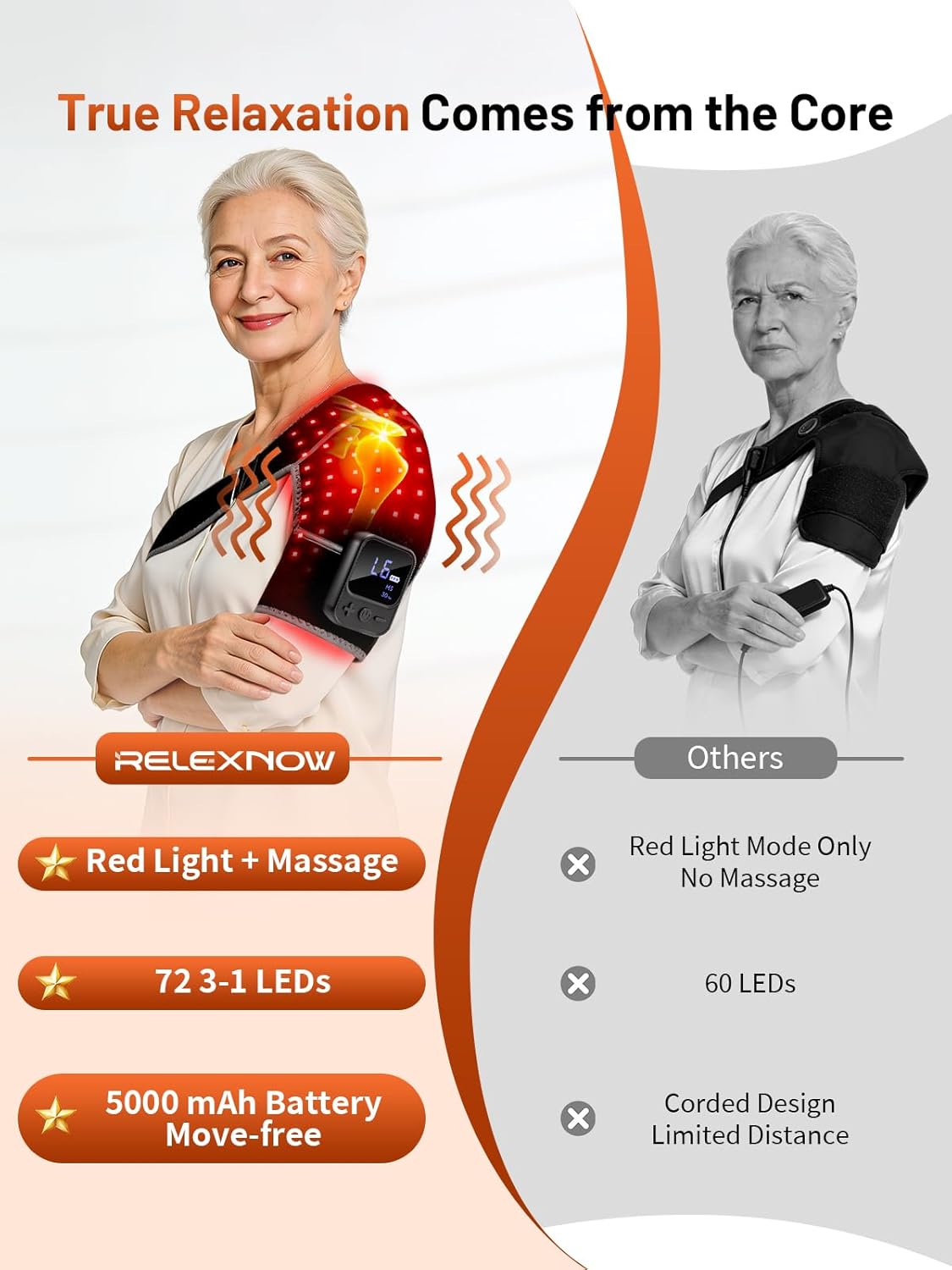 | Additional Features | Red Light Therapy & Vibration Massage, Cordless & Long-Lasting Battery |