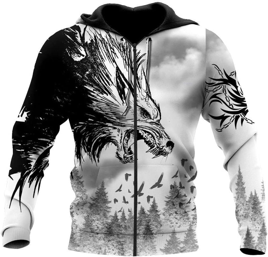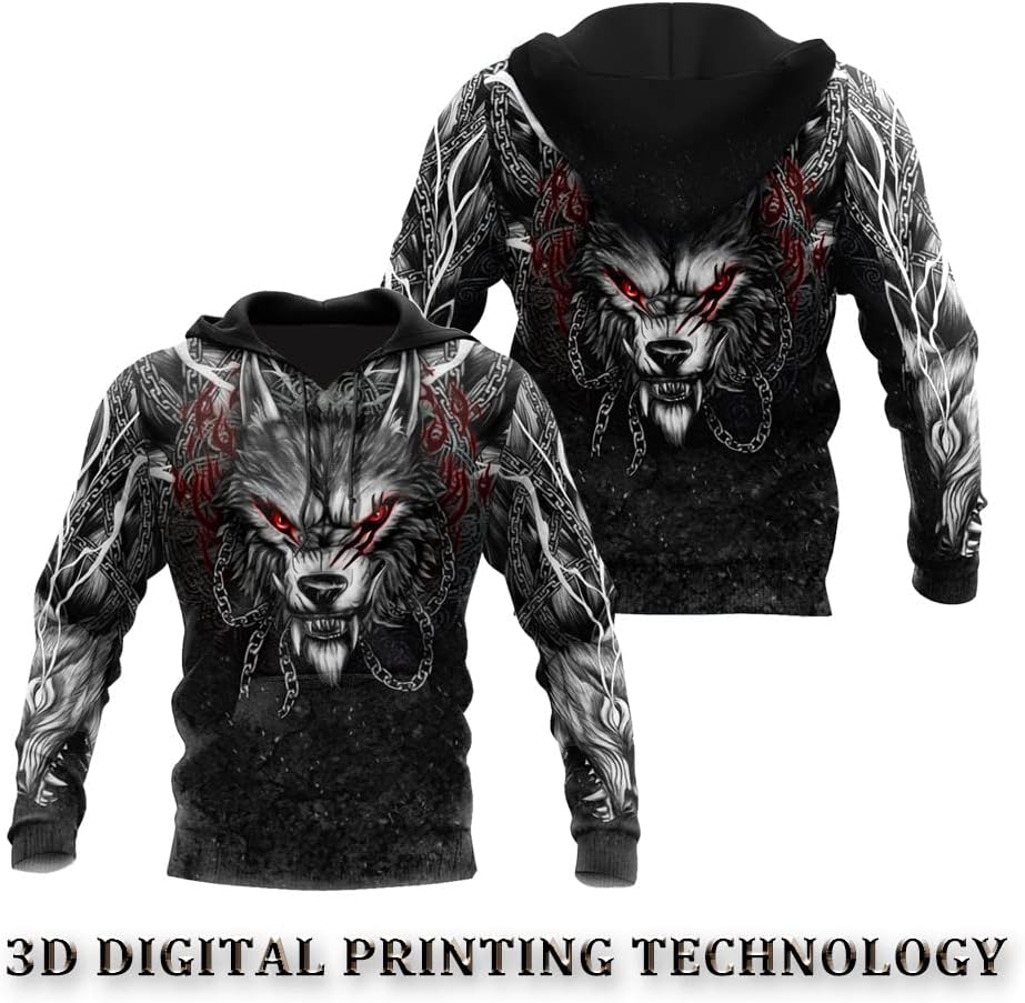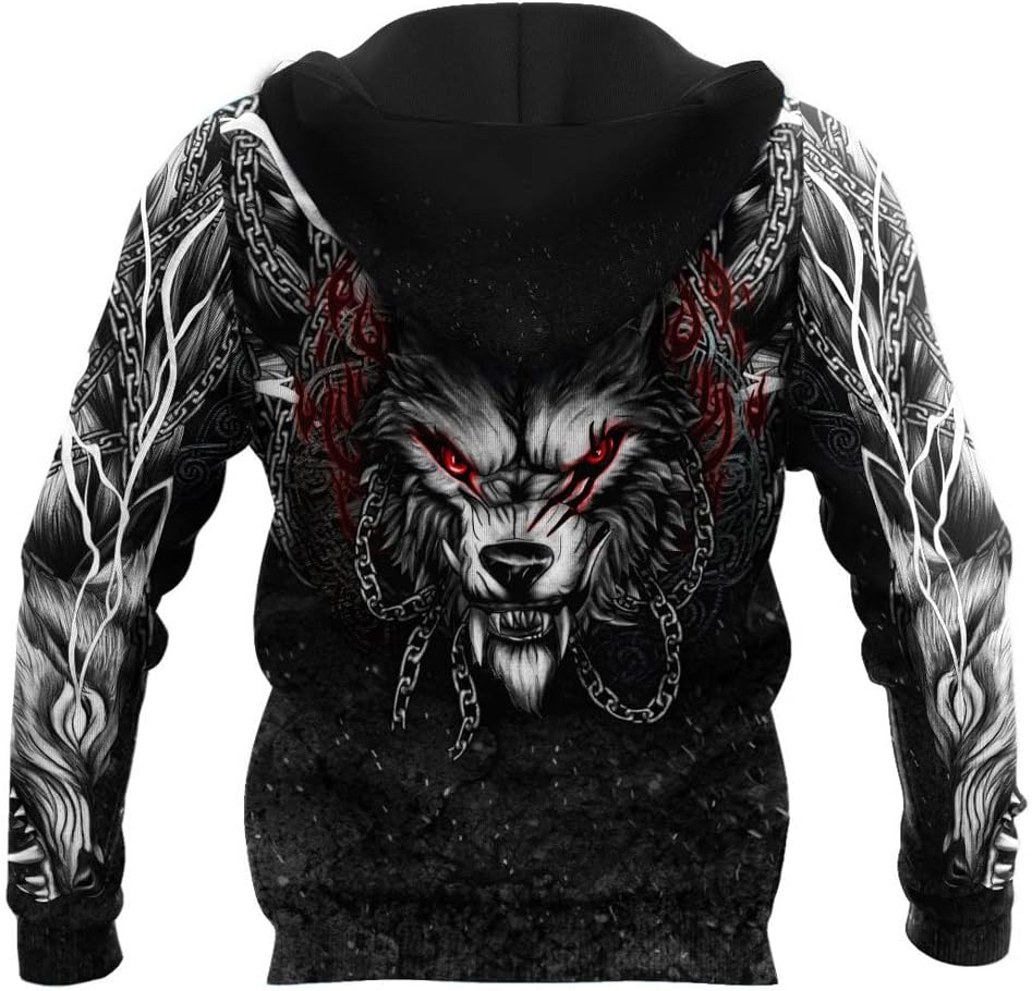 *********⭐ Today, Fenrir is often used as a symbol in clothing and jewelry, as an amulet, to showcase cultural pride or simply as a symbol of strength and power.*********⭐ Features ⭐Unisex;Hoodie/zipper sweatshirt with kangaroo pockets to warm your hands and all small parts on cold days;With an adjustable drawstring big hood, protect your head from the cold wind;Classic long sleeve design;Fashionable and versatile, you can wear it inside and outside. Perfect item to mix with Skinny Jeans Shorts Leggings or Boots.*********⭐ Creative gifts ⭐Great gift for Christmas, a birthday, viking day, or any other present giving occasion. Perfect gift idea for nordic people, vikings enthusiasts, scandinavians, Odin believers or anyone who is crazy about viking mythology.*********⭐ (U.S. size) ⭐S/M/L/XL/XXL/3XL/4XL/5XL (please ignore the size chart provided by Amazon and refer to our size chart)*********⭐ Washing care ⭐Hand wash/machine wash/hang to dry*********⭐Tip ⭐ If you buy 2 or more you'll save quite a lot on shipping.❤ Browse our full selection of men’s Viking apparel to find the perfect item to show your dedication to the Viking way.