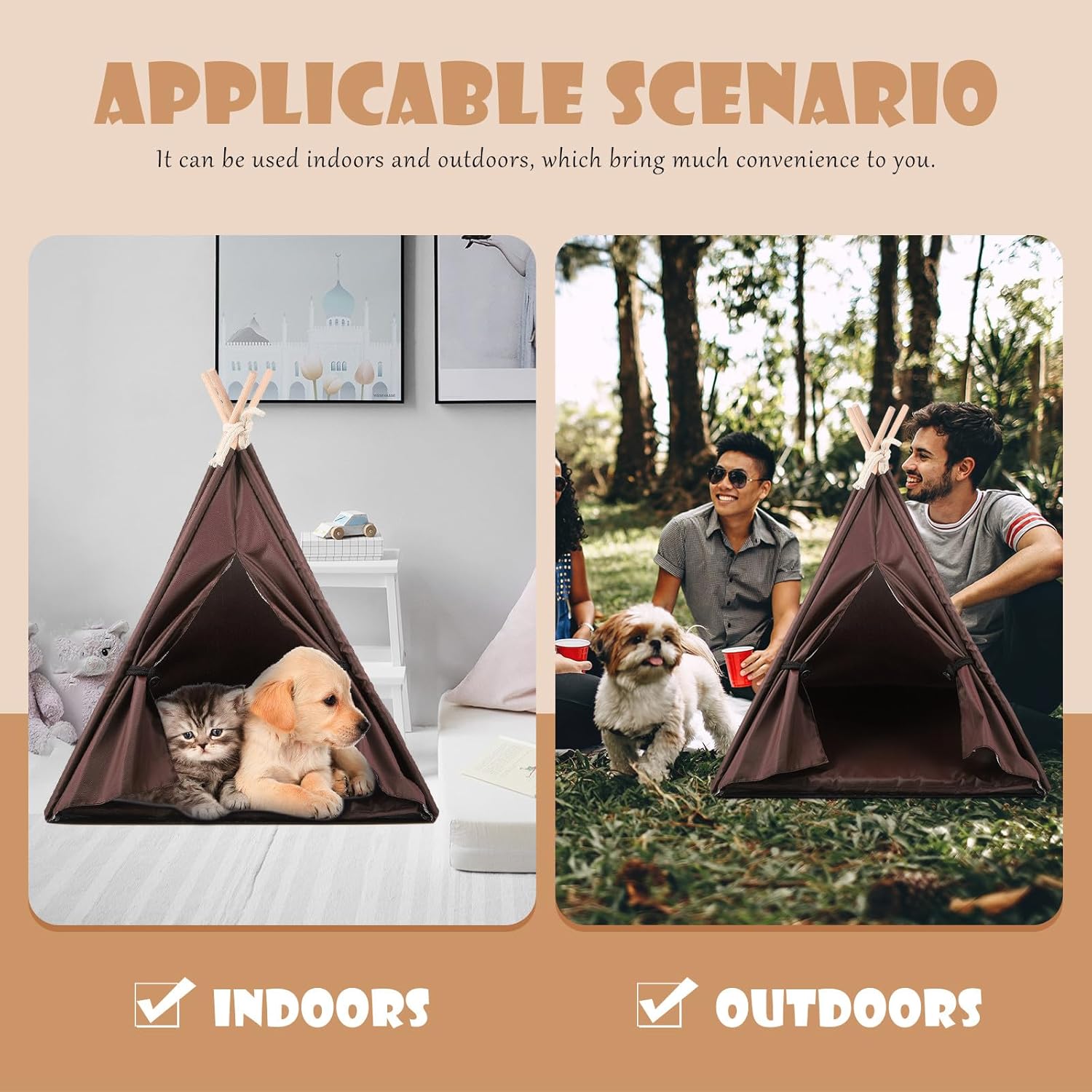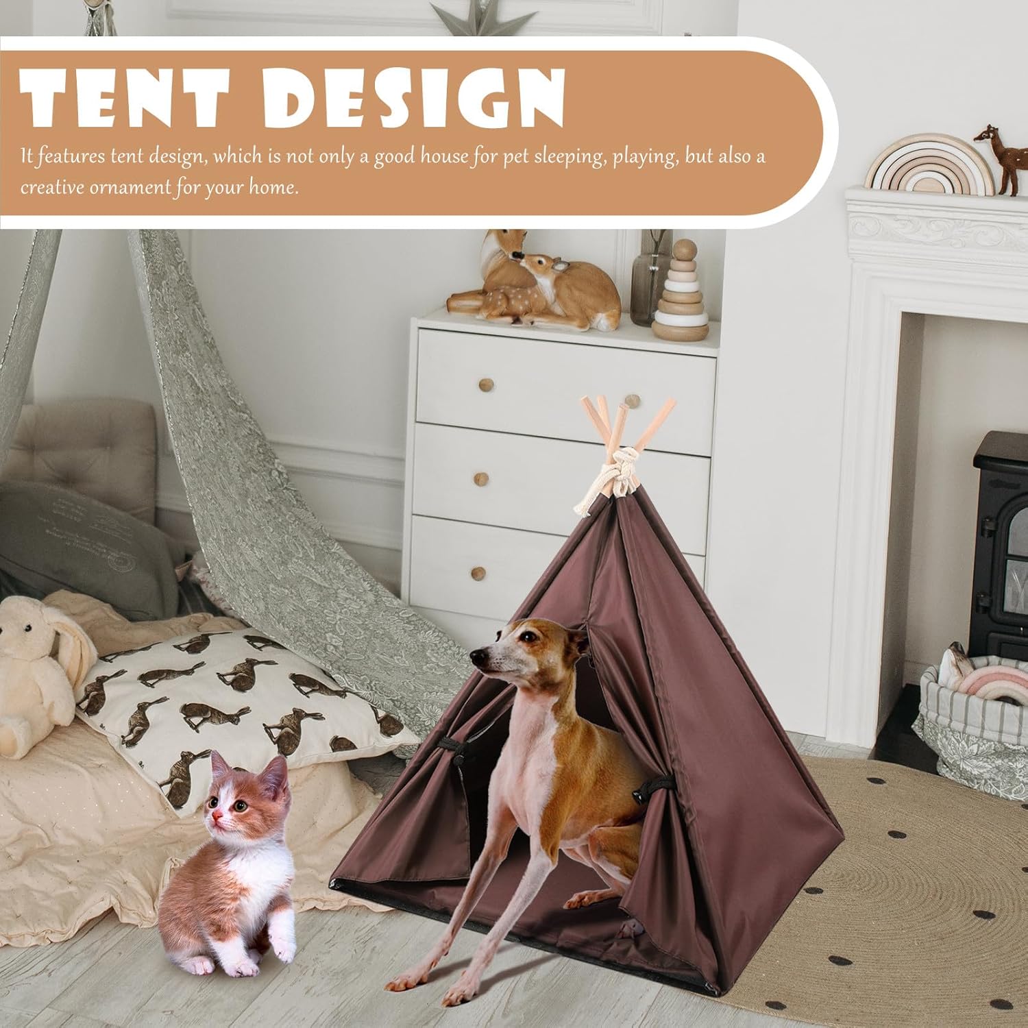 Package Include 1 x Pet Tent Features -Material: Oxford cloth -Product Info:Waterproof pet tent -A practical and adorable pet house for both cats and dogs and other pets dog bed teepee tent. -It ensures your pets good sleep, and better daily activities, very practical teepee dog tent. -You can put it on the floor anywhere as you like, or for outdoor activities dog teepee. -Can be a good gift for your friends, family who have pets and they will like it doggie tent. -The unique tent shape attracts your pet's attention to sleep and rest in it teepee for small animals.Goods Informationpet tent for dogs A good gift for your pet or your friends who , and they will like it.tiny tent for dogs Creative shape and simple color will attract your pet's attention.outdoor cat nest This product is a pet sleeping tent, which is comfortable and will not hurt your pet