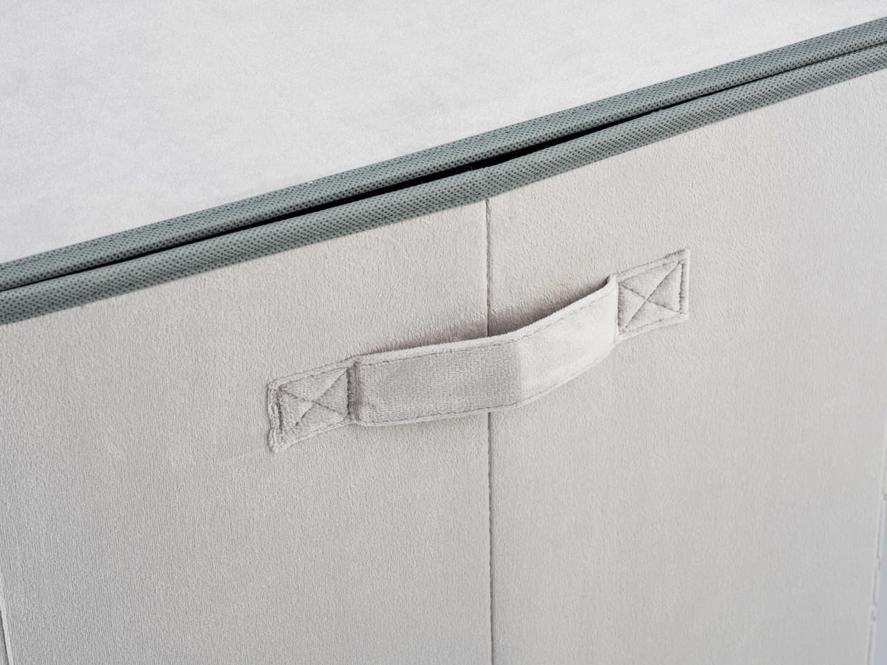 Iridescent appearance guaranteed – the square laundry basket Sam by Wenko delights in velvety soft felt and grey robe, which has iridescent silver decoration sets very special accents. Equipped with two handy handles, you can easily transport the beautiful laundry basket with lid from one place to another. The collected dirty laundry can be easily taken to the washing machine. The practical lid protects against eyes inside the basket, which closes reliably with a Velcro fastener. The silver lines in geometric arrangement harmonise the laundry bin in a delightful way. This makes it an eye-catcher in all rooms, whether bathroom, bedroom or hallway. The decorative square laundry basket has a reinforcement at the base that prevents the laundry basket from tipping over when the lid is open. With a dimensions of 34 x 55 x 34 cm and a generous volume of 63 litres, it can be placed decoratively in small niches and is therefore the ideal companion for small bathrooms. The collector's with a playful design is made from 100% polyester inside and outside. The velvety surface not only looks cosy, it is also pleasant to the touch. In addition to its function as a storage place for dirty laundry until the next wash, the easy-care storage basket is also suitable as a storage space for wool blankets and cushions as well as a storage container for toys in the children's room. The Sam laundry basket could inspire you? Then we have good news – Wenko has a round open version with two handles in the range with the Samira laundry basket – so you can collect your laundry separately in colour. Material: inner material: 100% polyester plastic, outer material: 100% polyester plastic Colour: outer material: grey, reinforcement: grey, inner material: grey Dimensions (W x H x D): 34 cm x 55 cm x 34 cm Net weight: 1322g