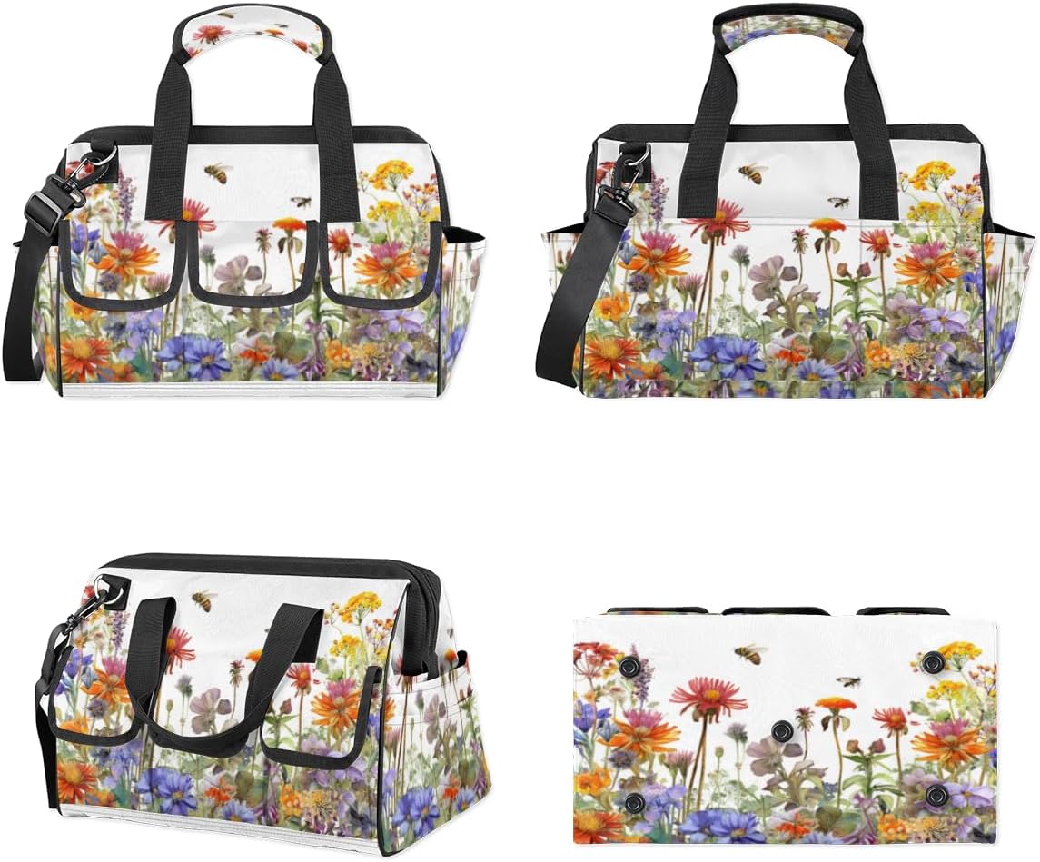 Tool organizer bag size: 14.8 x 10 x 9.1 inches. With 6 interior pockets, 6 exterior pockets and 2 side pockets, it is organized and easy to carry.The portable tool bag's built-in metal frame and spacious zipper closure provides more space on top for easy placement and removal of tools.The plumber's tool bag is made of high quality durability composite twill fabric and oxford fabric, the waterproof oxford fabric and waterproof bottom ensure the inside of the tool bag stays clean and dry.The mechanic tool bag is equipped with a detachable and adjustable shoulder strap and a comfortable carrying handle, which can effectively relieve hand fatigue and shoulder pressure.The electrician tool bag is suitable for carpentry, construction, maintenance, gardening, shopping, beach, pool, outdoor camping and traveling, etc. It is perfect for professional and everyday use.The electrician tool bag can only be hand washed. Do not machine wash. For stains, simply wipe with a damp cloth or sponge. For stubborn stains, wash with soap and water and rinse thoroughly. Air dry naturally after washing. Do not bleach. Do not scrub tool bags vigorously with a brush or similar object.