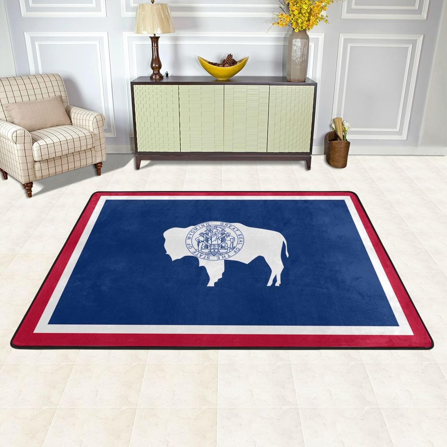 Transform your home with the exquisite WZYWHJ Wyoming State Flag Prints flannel carpet floor mat 72"x48" . Crafted from high-quality flannel fabric (polyester), this carpet boasts a high density space elastic cotton interlayer that is not only absorbent but also incredibly soft to the touch. The delicate fluff texture adds a touch of luxury while ensuring no pilling or fading over time. The innovative middle layer features a high-density memory sponge that effectively relieves foot pressure, making it a comfortable choice for any room. Suitable for a wide range of scenarios including living rooms, offices, coffee tables, beds, and balconies, this carpet floor mat offers versatility and style. The bottom of the mat is made of non-woven fabric and plastic, providing an anti-slip and durable foundation. Easy to clean, wear-resistant, and lint-free, this WZYWHJ carpet is the perfect blend of comfort, functionality, and durability.